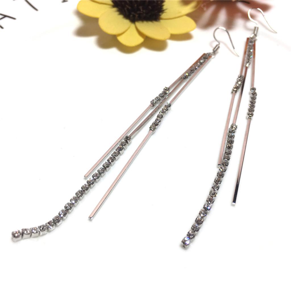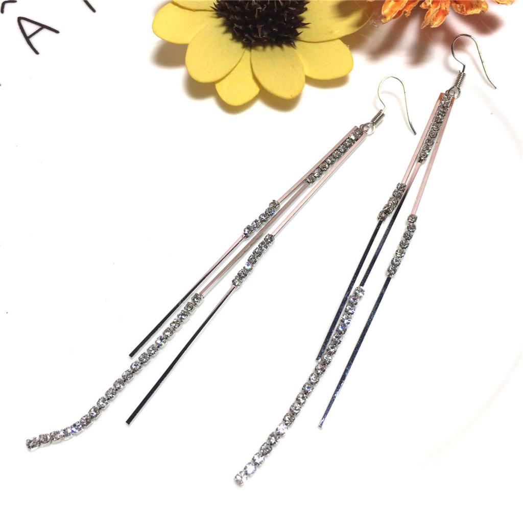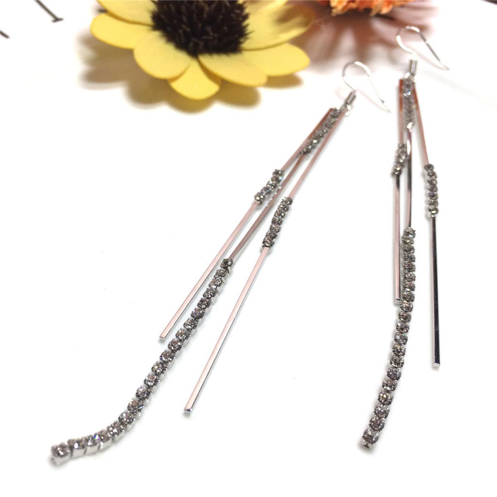 Silver Crystal Earrings Tassel Earrings Jewelry Gift Woman Party Girl Dangle Earrings For