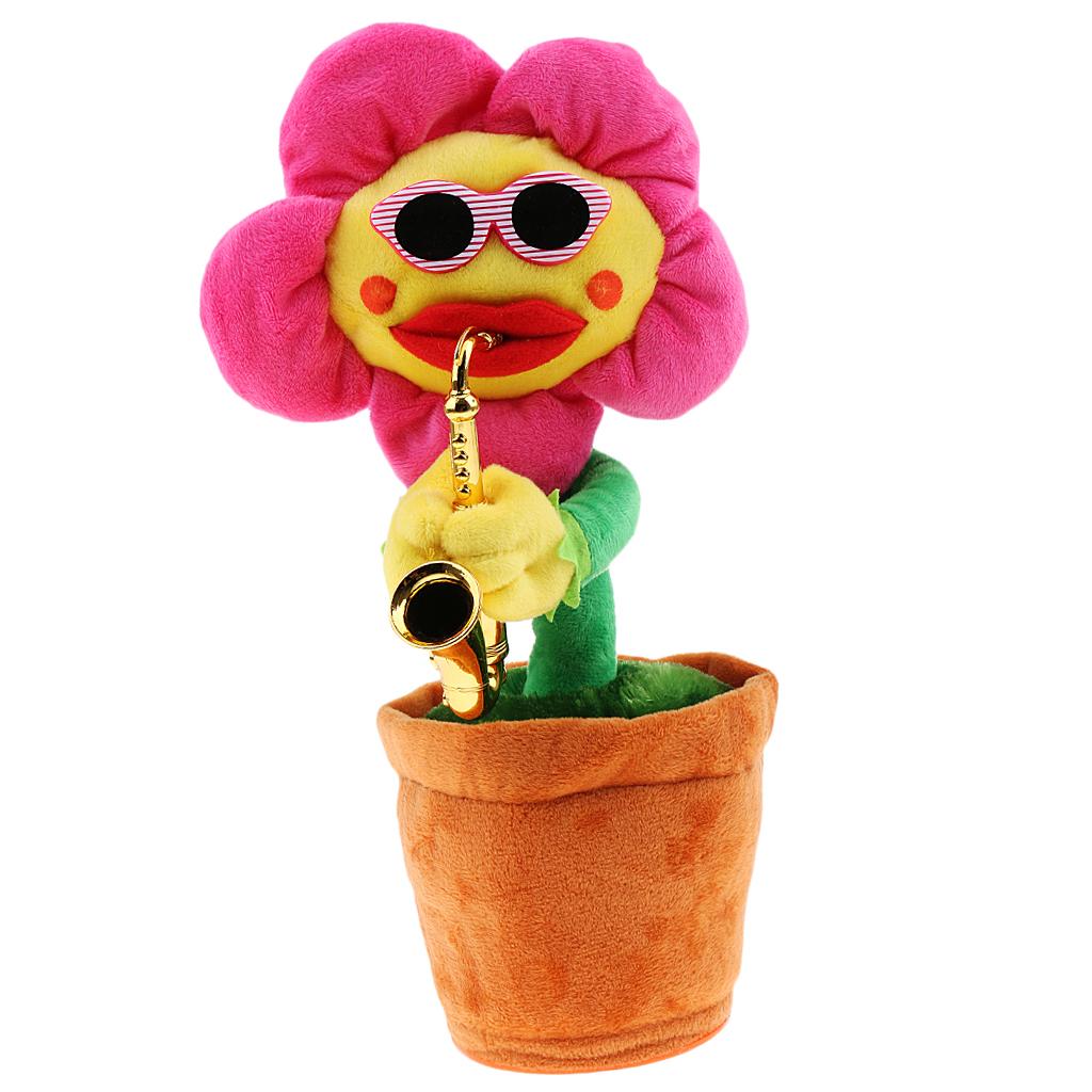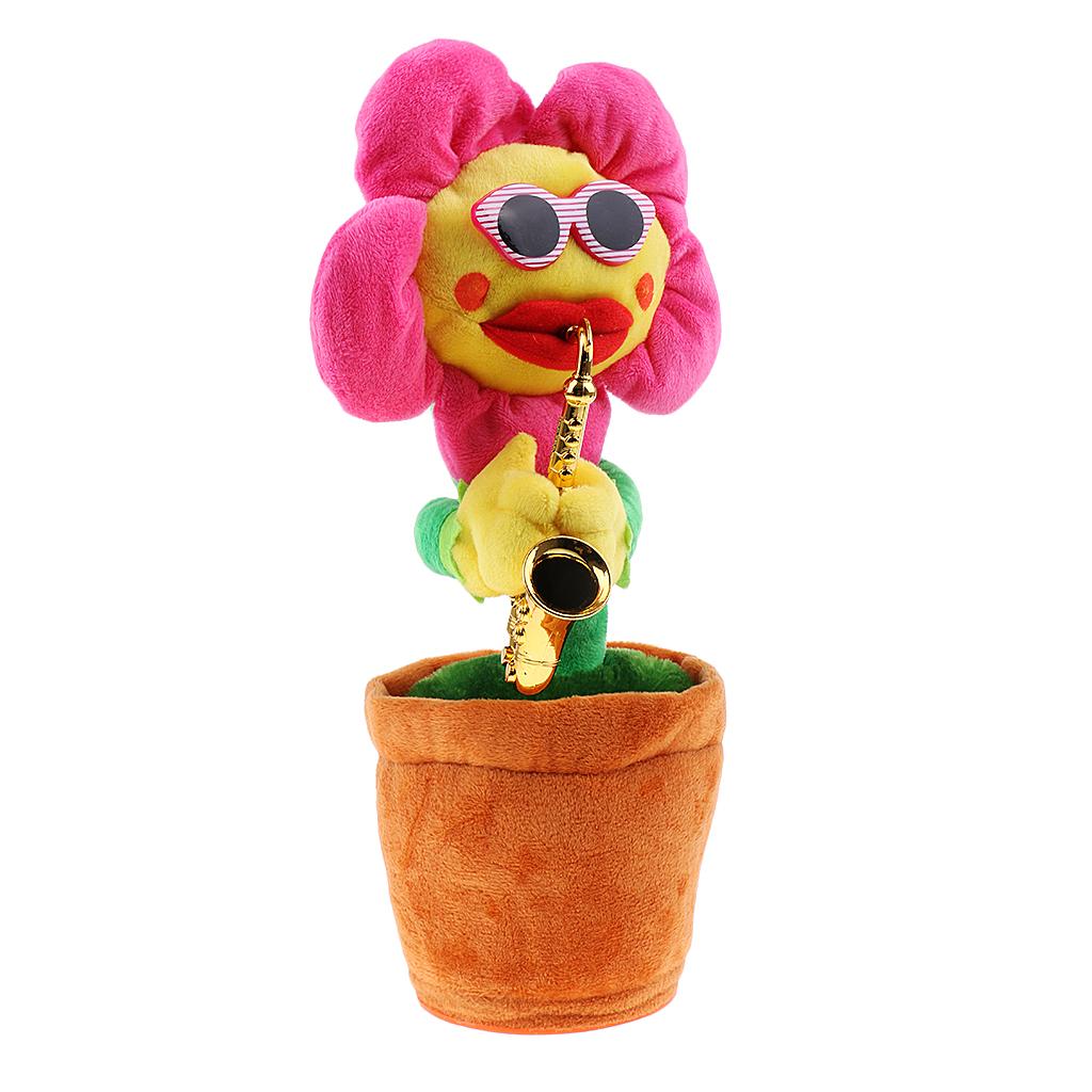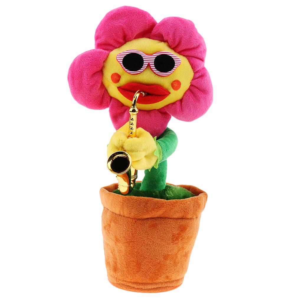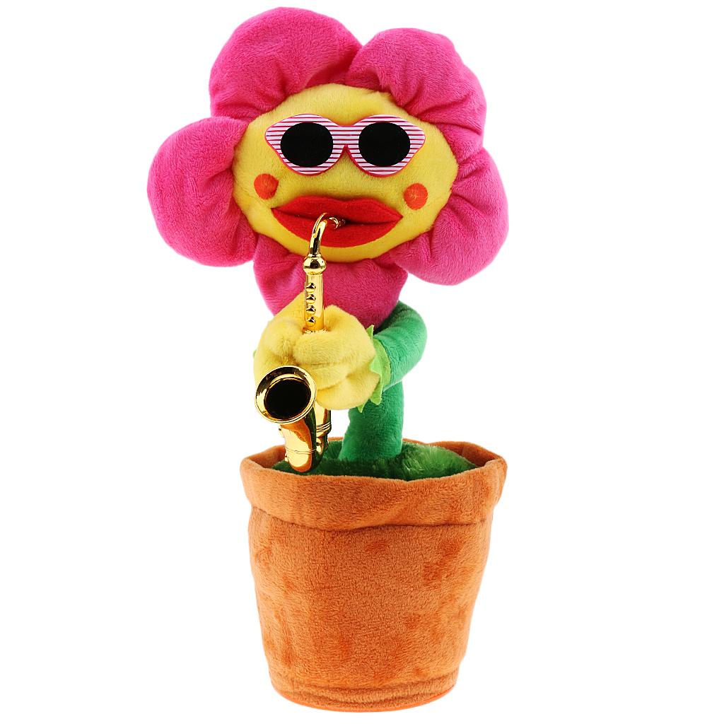 Funny Sunflower with Sunglasses and Saxophone - Singing Dancing Plush Toy.