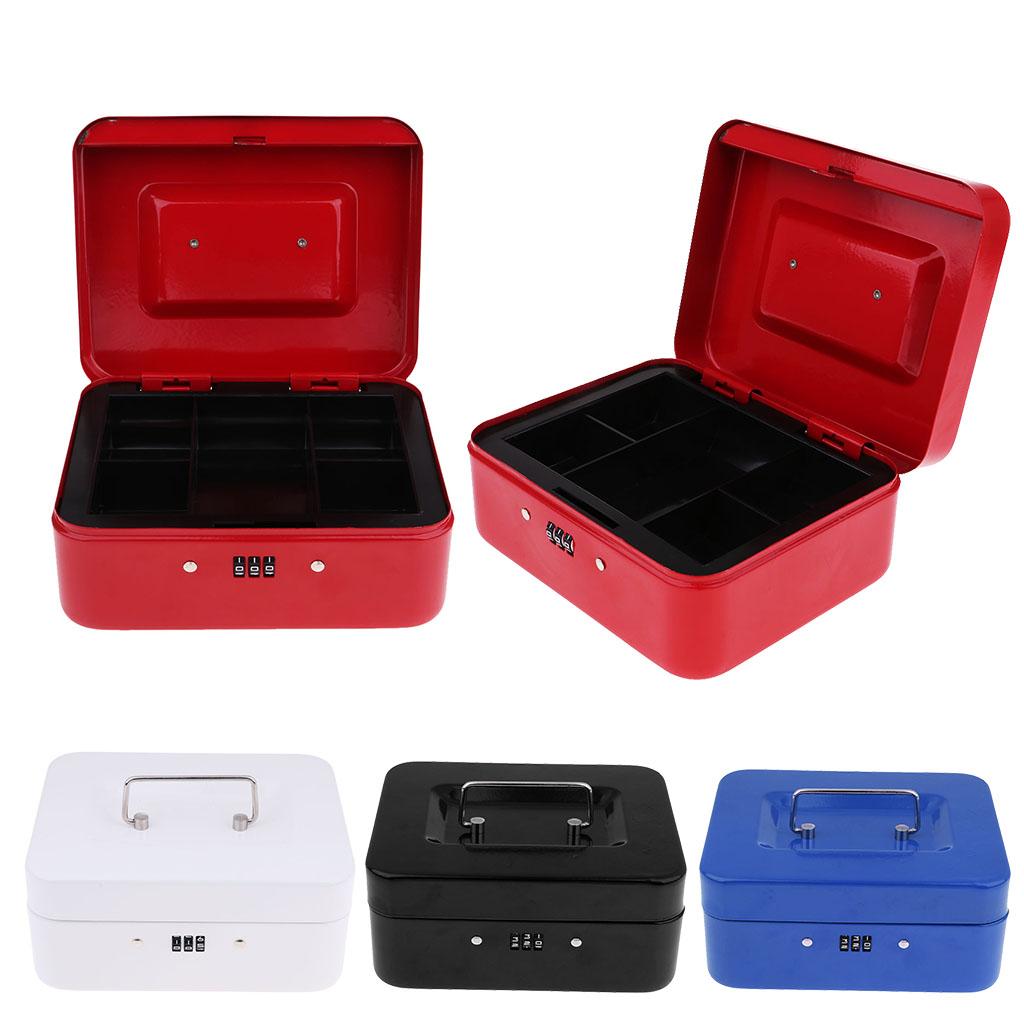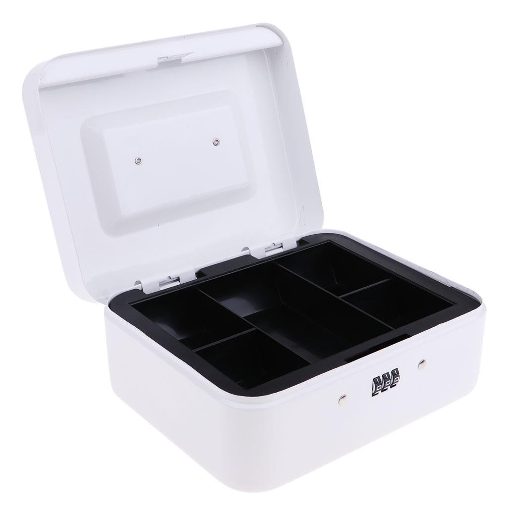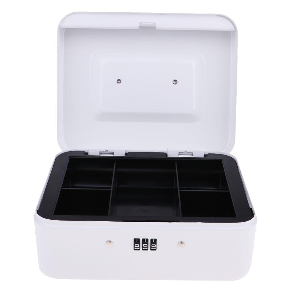 Cash box has an interior cash tray with six compartments to help organize coins, keys, rings. The bottom of the money box can help to store checks, receipts and valuables.