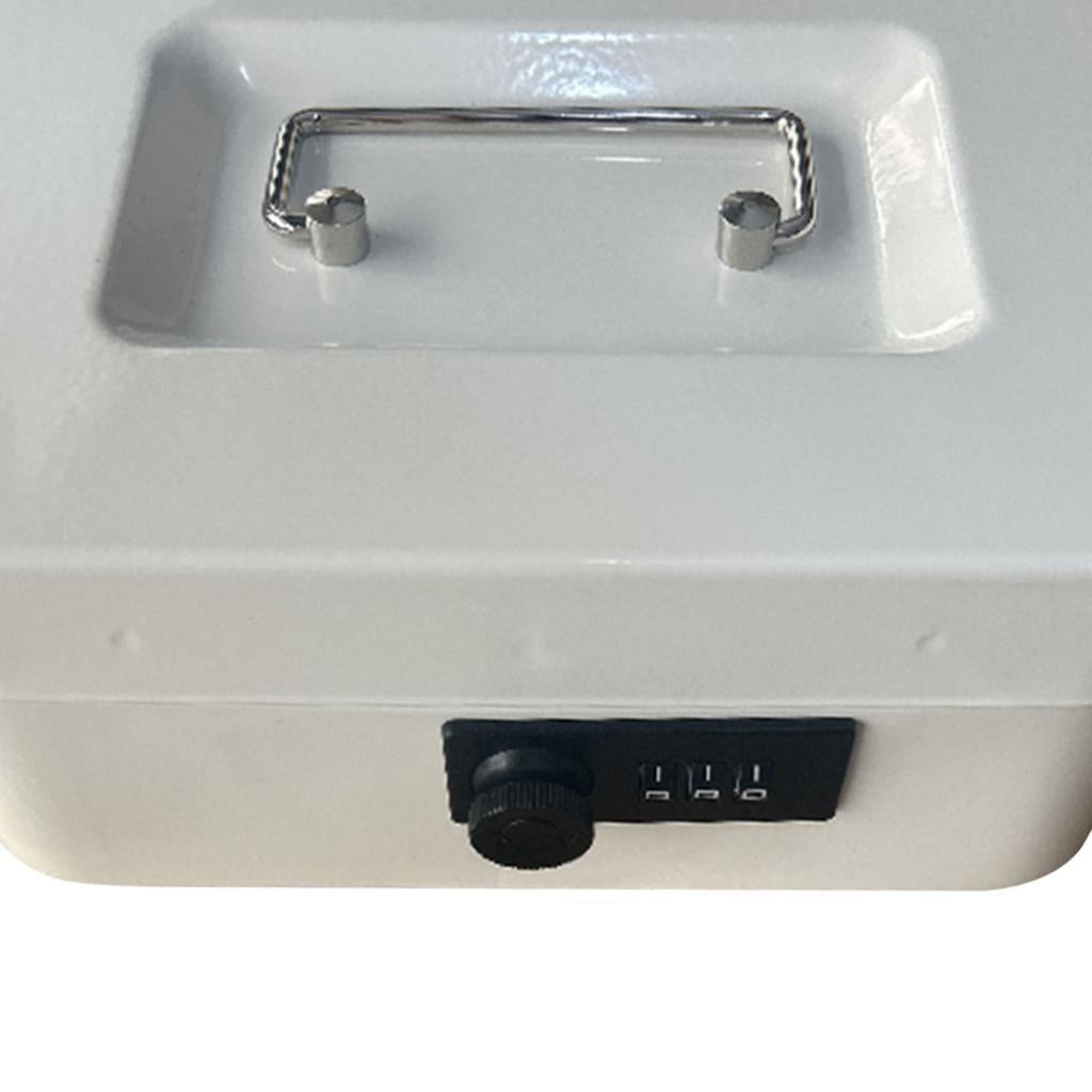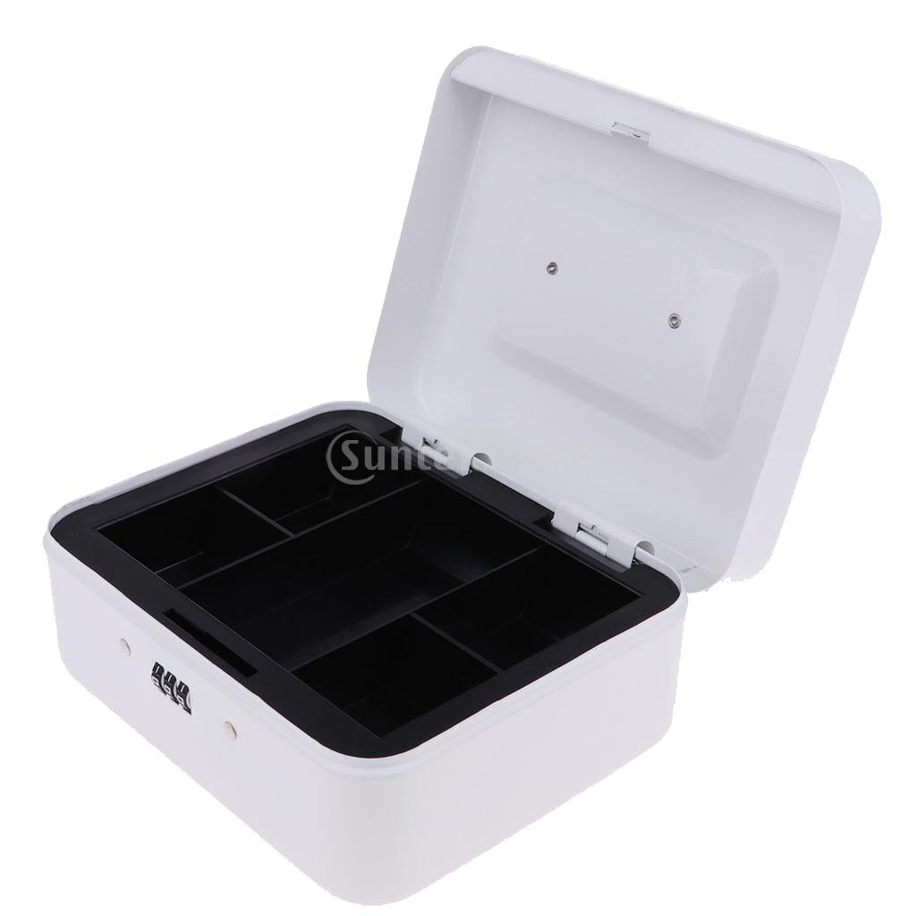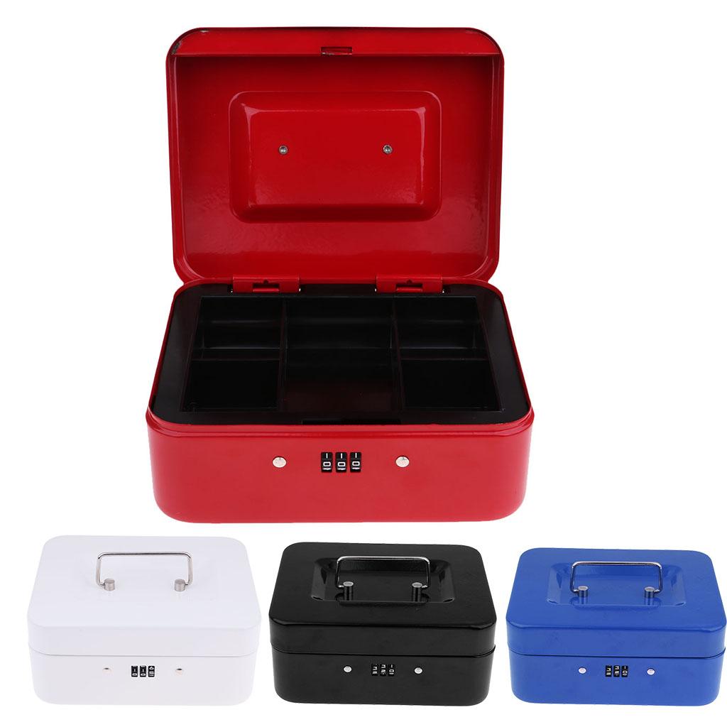 Cash box has an interior cash tray with six compartments to help organize coins, keys, rings. The bottom of the money box can help to store checks, receipts and valuables.