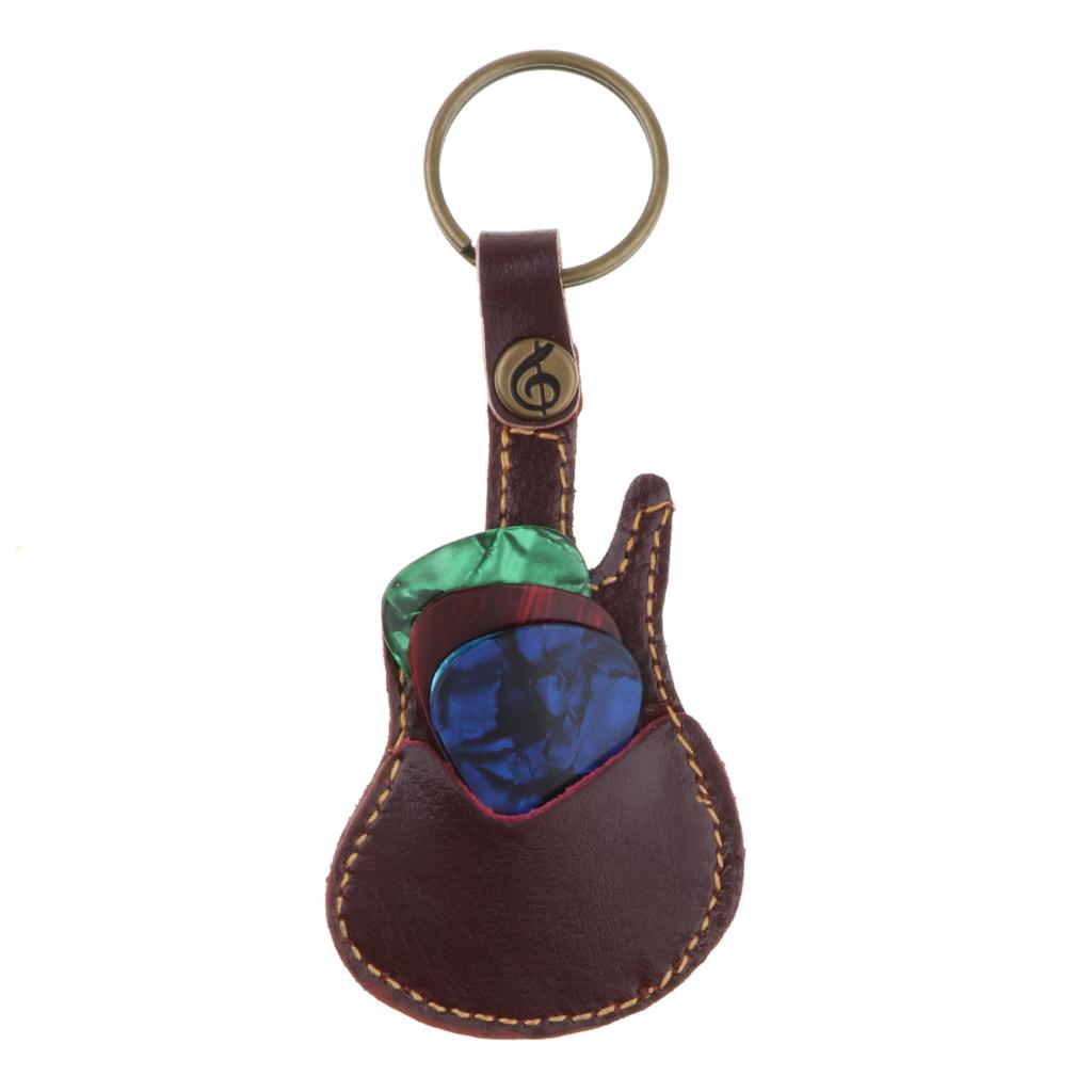 Soft Leather Guitar Pick Holder Plectrum Case Bag Guitar Shape Design 10 x 5cm