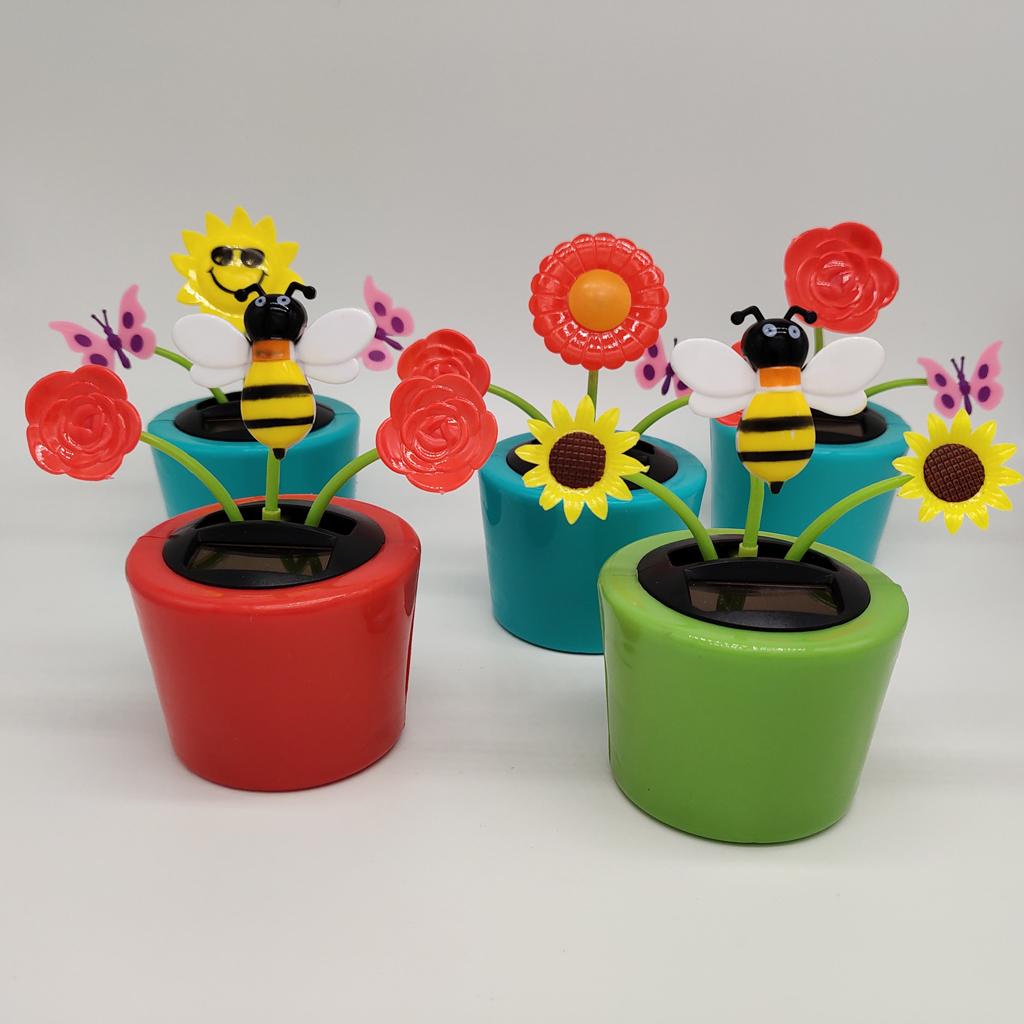 Cute solar powered Flip Flap rose honeybee dancing toy for kids toddlers.