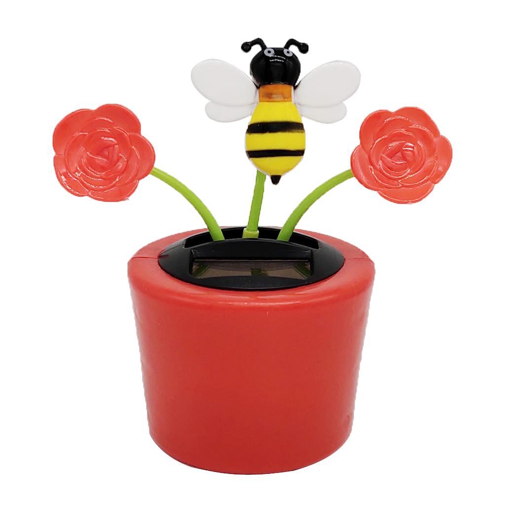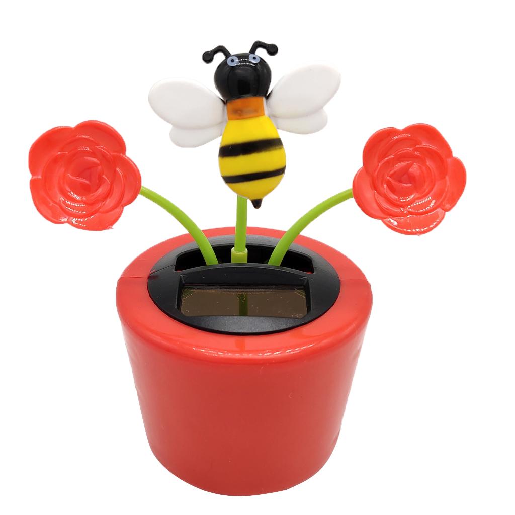 Solar Powered Flower Insect Shaking Doll Flip Flap Toy Home Decor Car Ornament Flowerpot Rose and Honeybee