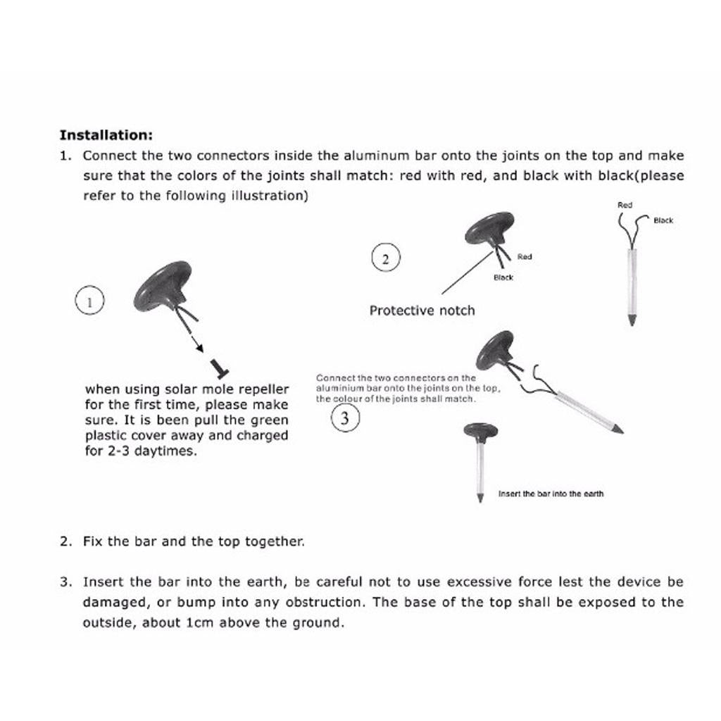 Daylight is converted into electrical energy by solar panels and stored in rechargeable batteries. When the solar panel can no longer charge the battery, the sounder will automatically sound. No wiring or additional power supply, no installation, directly plugged into the lawn.