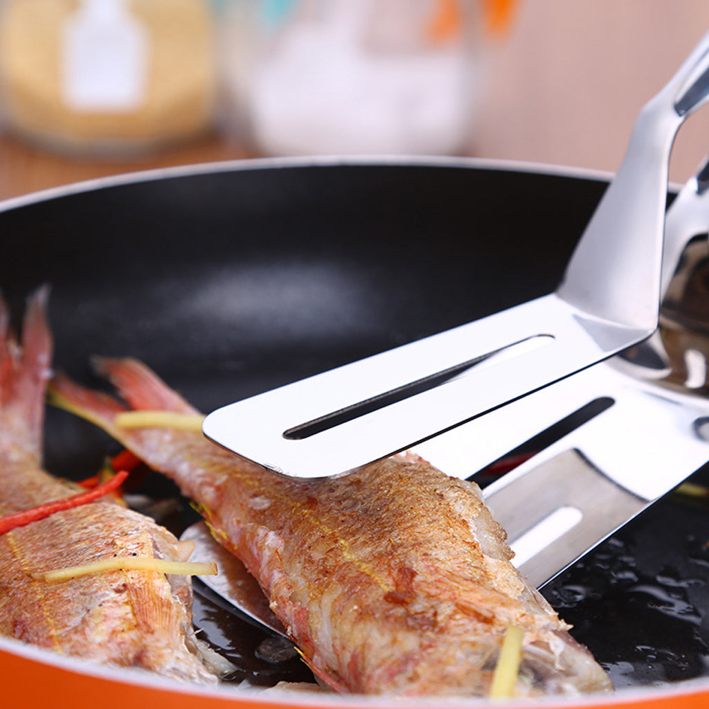 Perfect as serving tongs,cooking tongs,grilling tongs,slotted egg fish turner spatula,bread clamp,beef steak turner flipper.