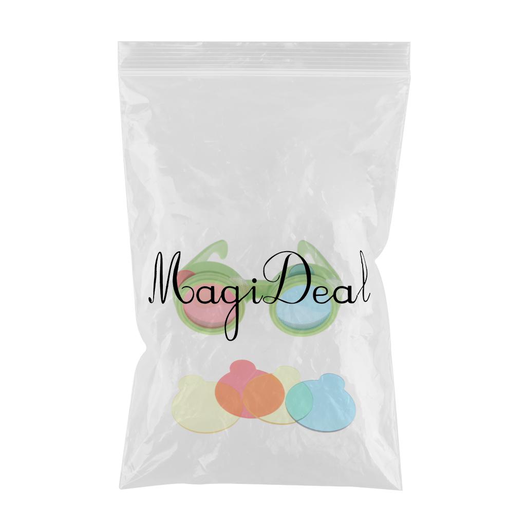 Included:A pair of eyeglasses frame, 6 lenses (2 lenses for red, yellow and blue lenses), and 2 concave lenses for simulating vision of insects