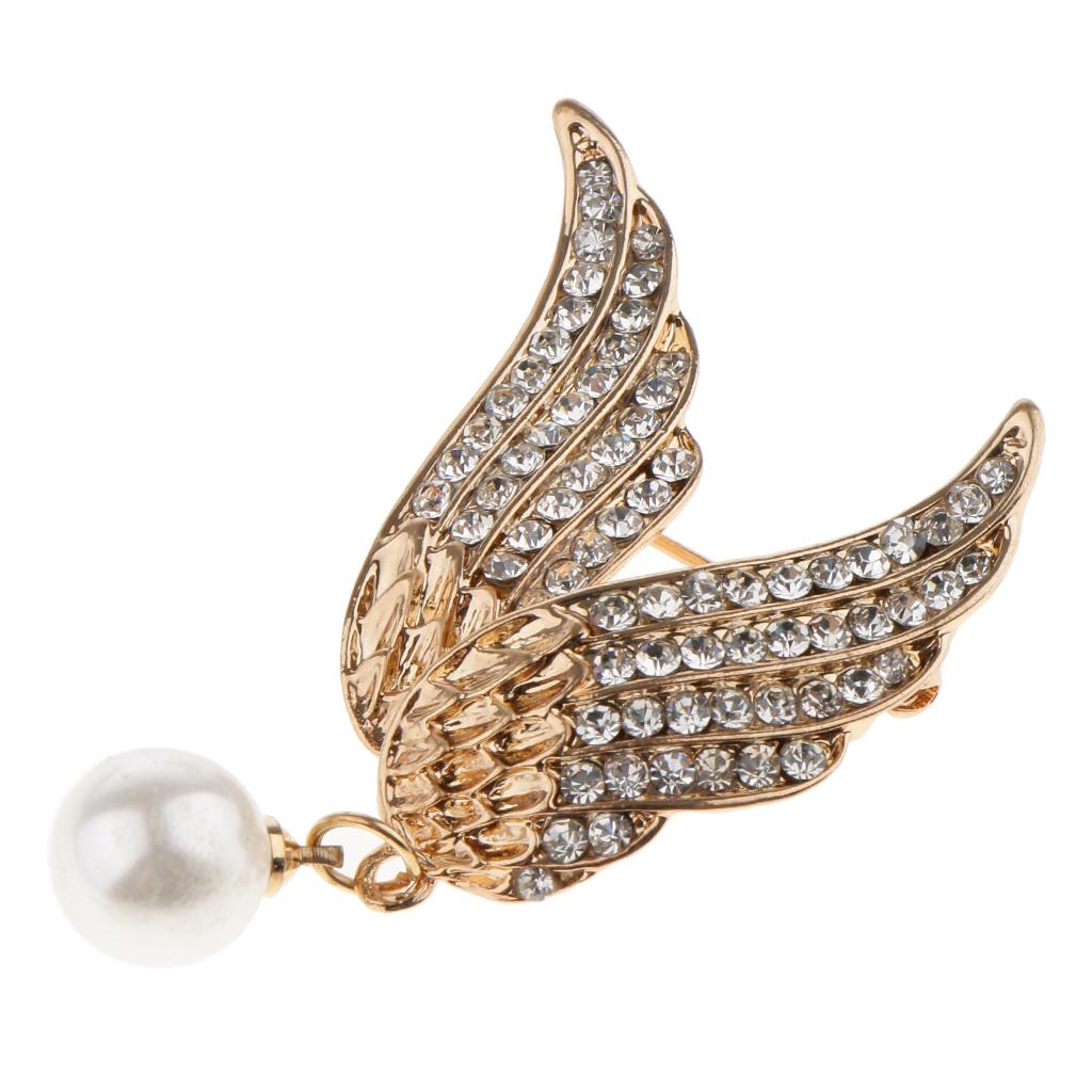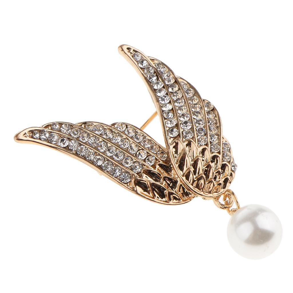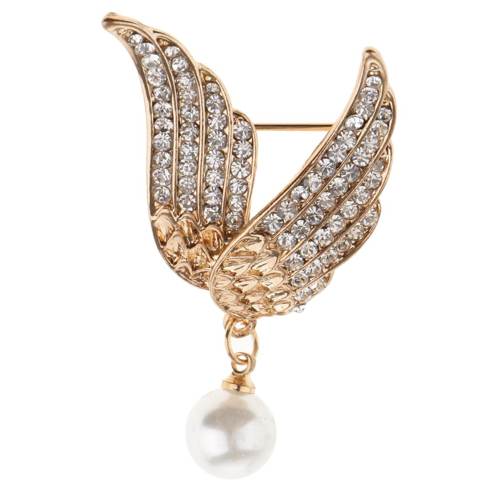 Stunning Rhinestone Wings Pearl Dangel Pin Brooch Mens Suit Collar Lapel Pin