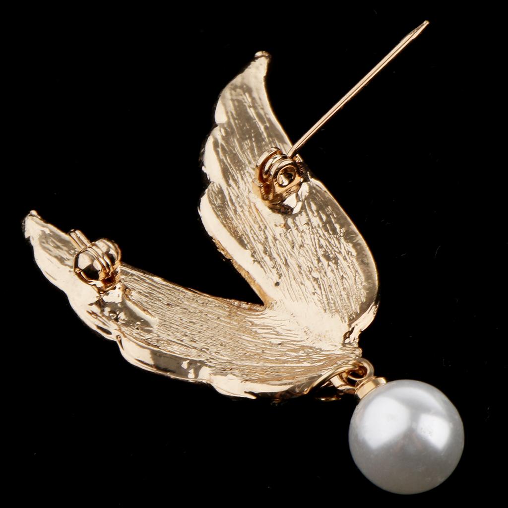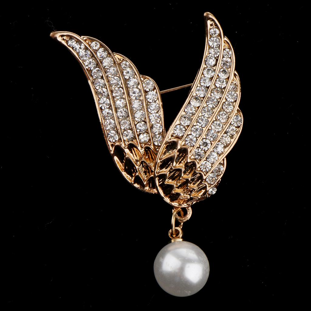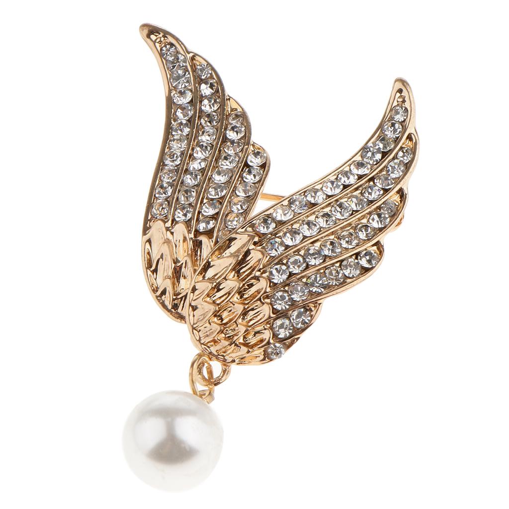 Stunning Rhinestone Wings Pearl Dangel Pin Brooch Mens Suit Collar Lapel Pin