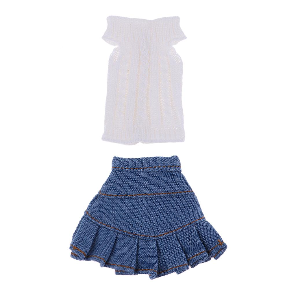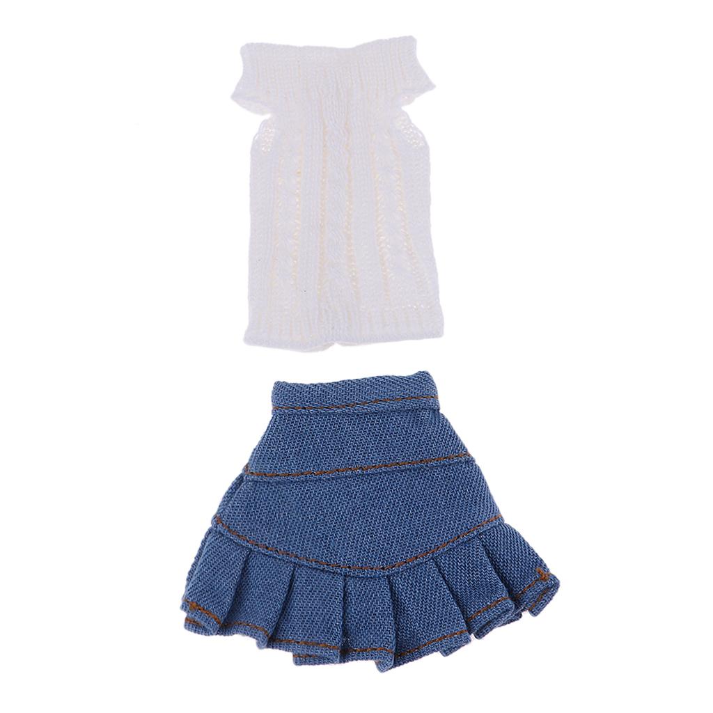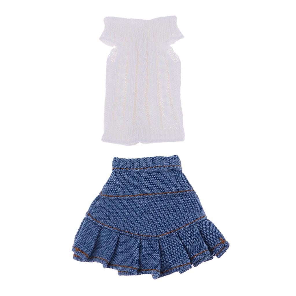 Doll Knitted Top & Denim Skirt Outfit for 1/6 Blythe Licca OB Xinyi Dolls Casual Wear Accessories.