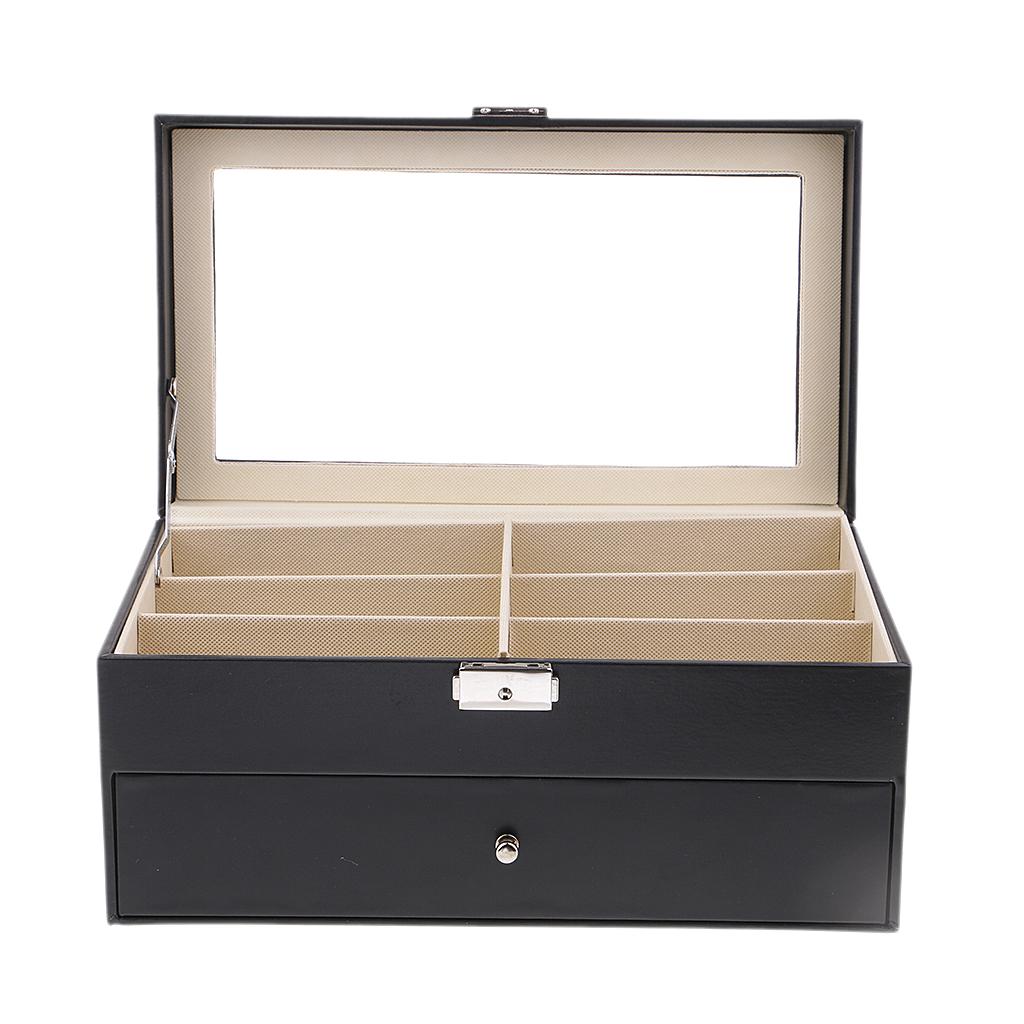 Double Layer 12 Grids PU Leather Glasses Display Box Storage Case Organizer Container Holder