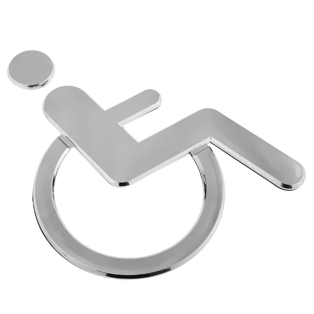 Symbol Sign Wheelchair Toilet Acrylic Adhesive Handicap Wall Decal Sign for Unisex Bathroom Restroom Door Symbol Silver