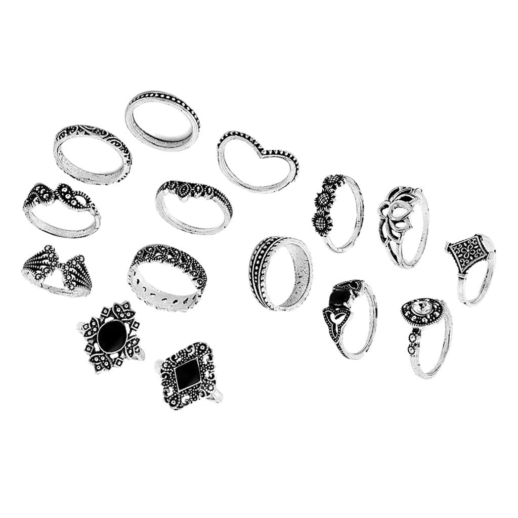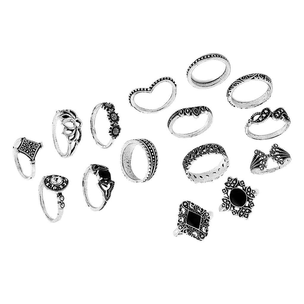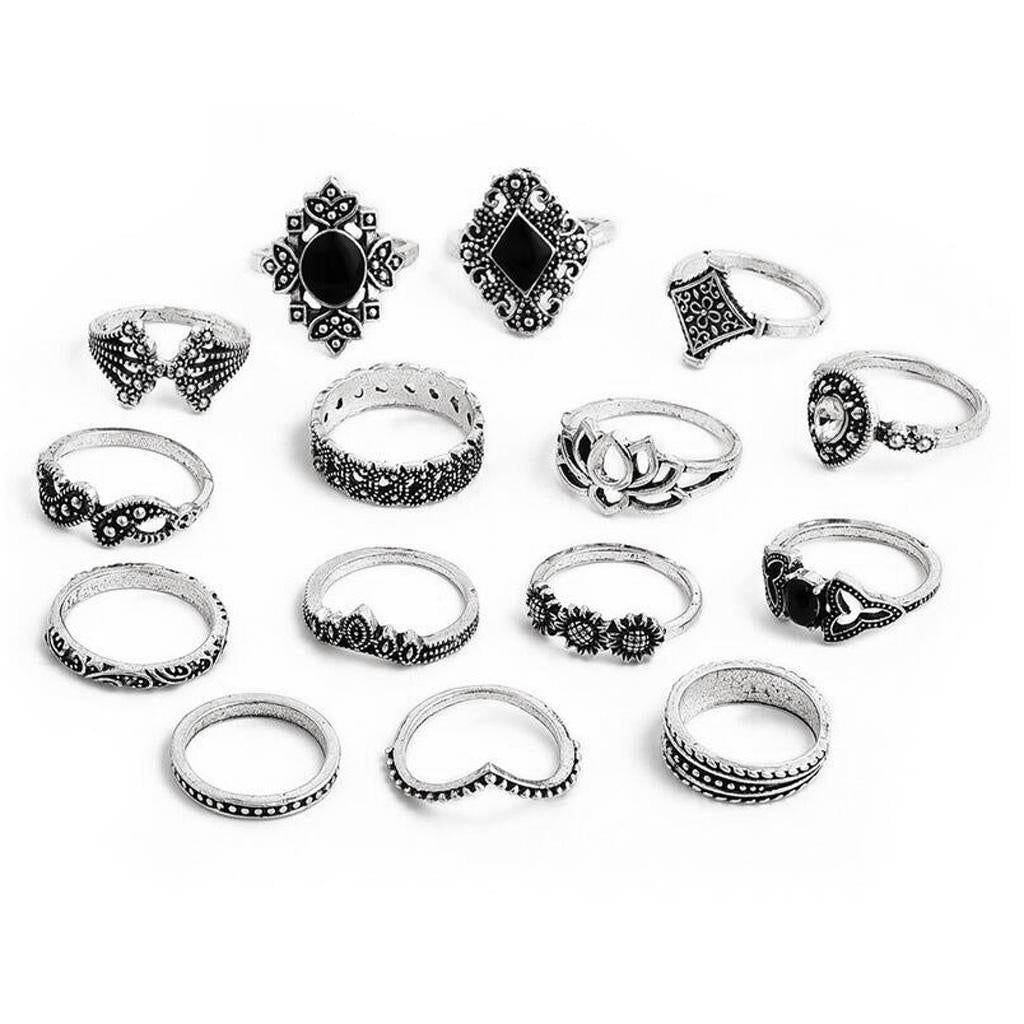 Vintage gem midi ring boho rings set, 15 Pieces/set.