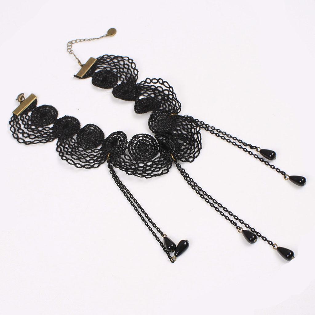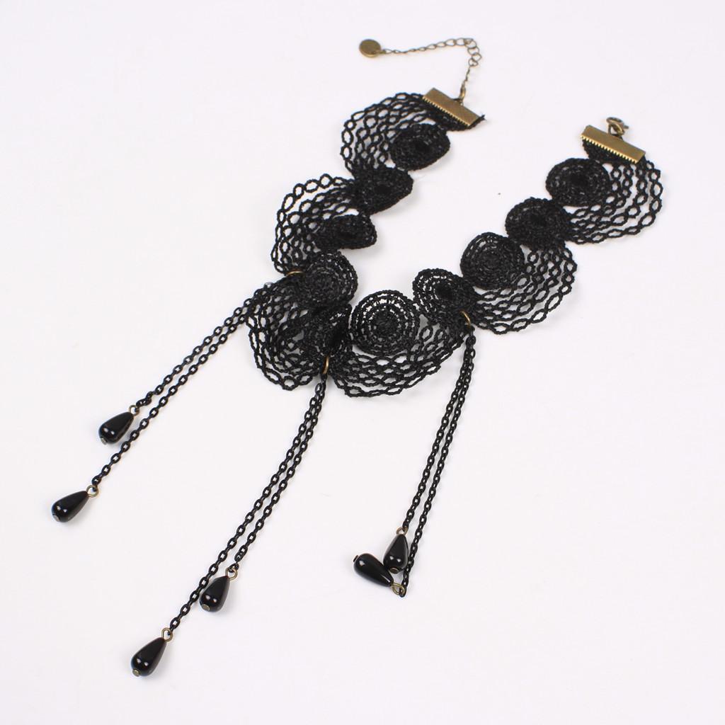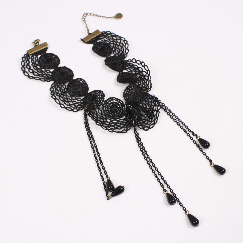 Vintage Black Lace Weaving Fringe Charm Beads Pendant Choker Necklace