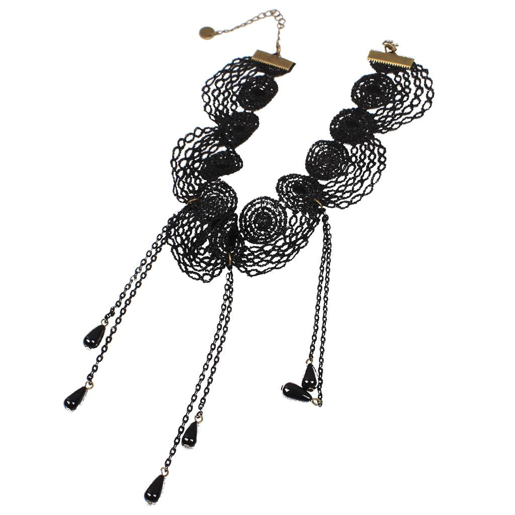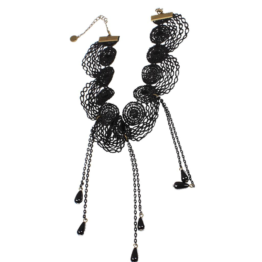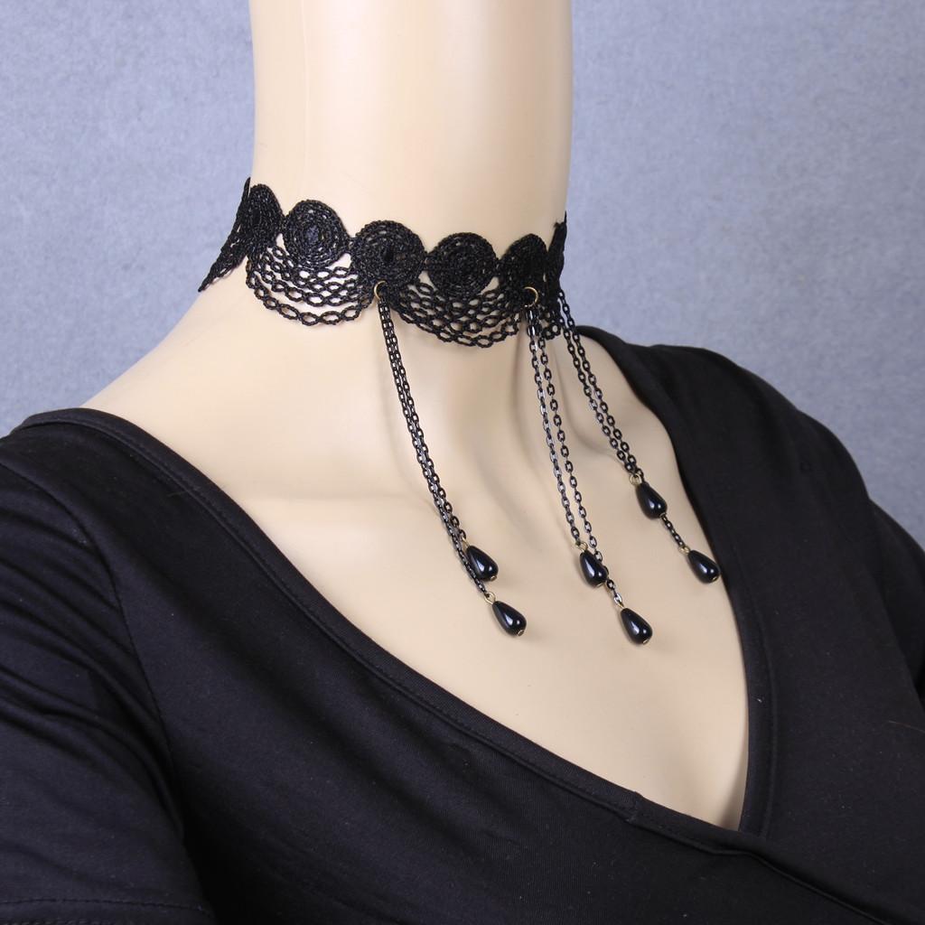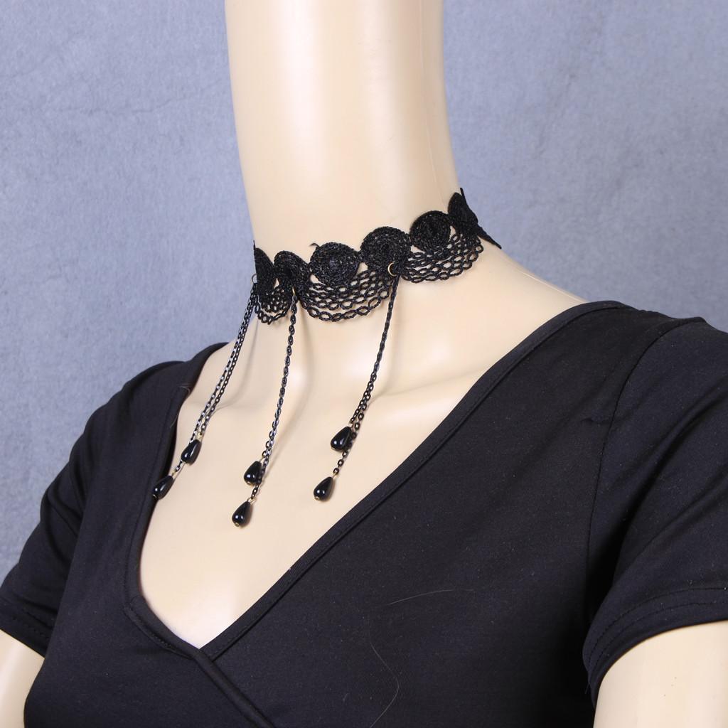 Vintage Black Lace Weaving Fringe Charm Beads Pendant Choker Necklace