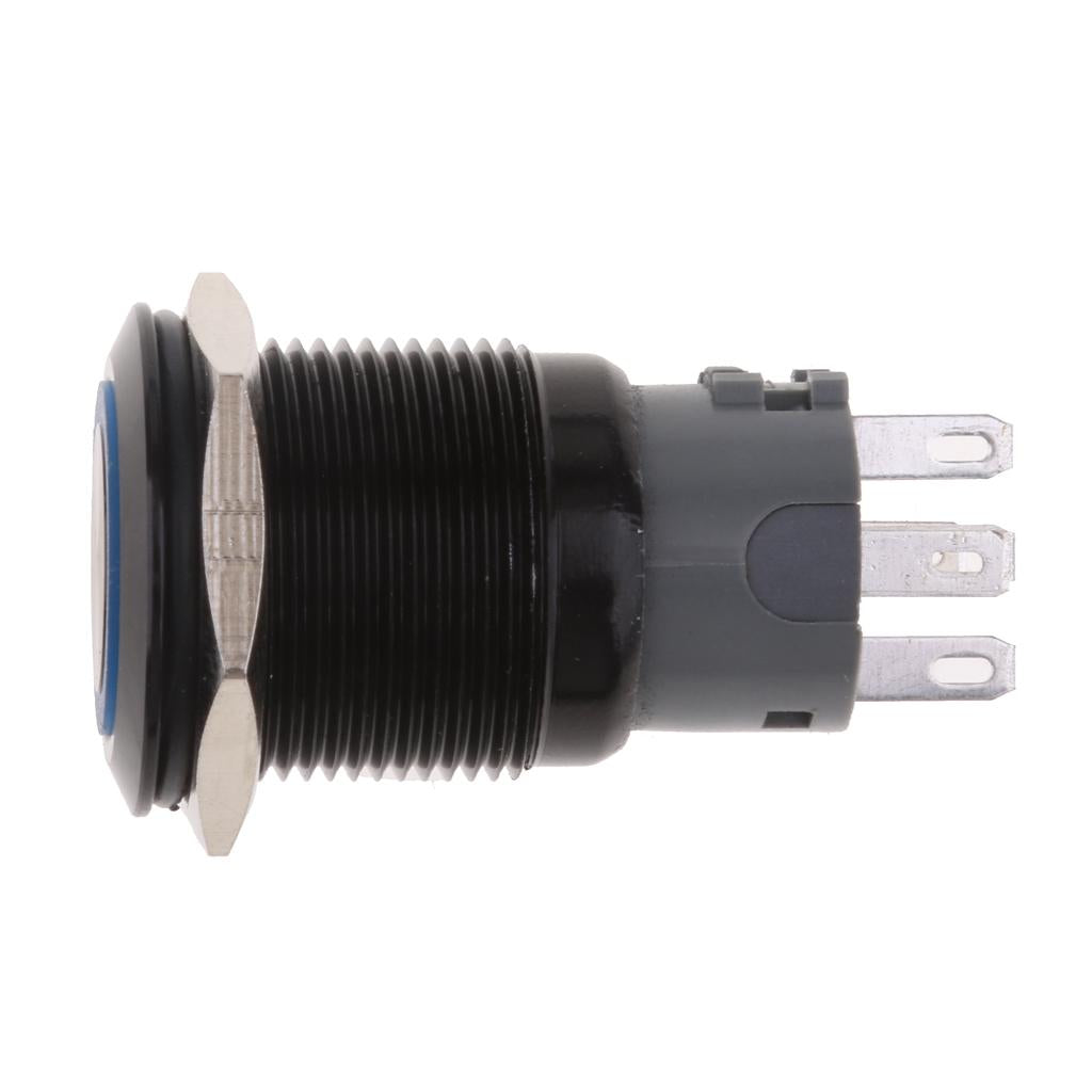 Waterproof 19mm Momentary Push Button Switch With 12V Blue LED Ring