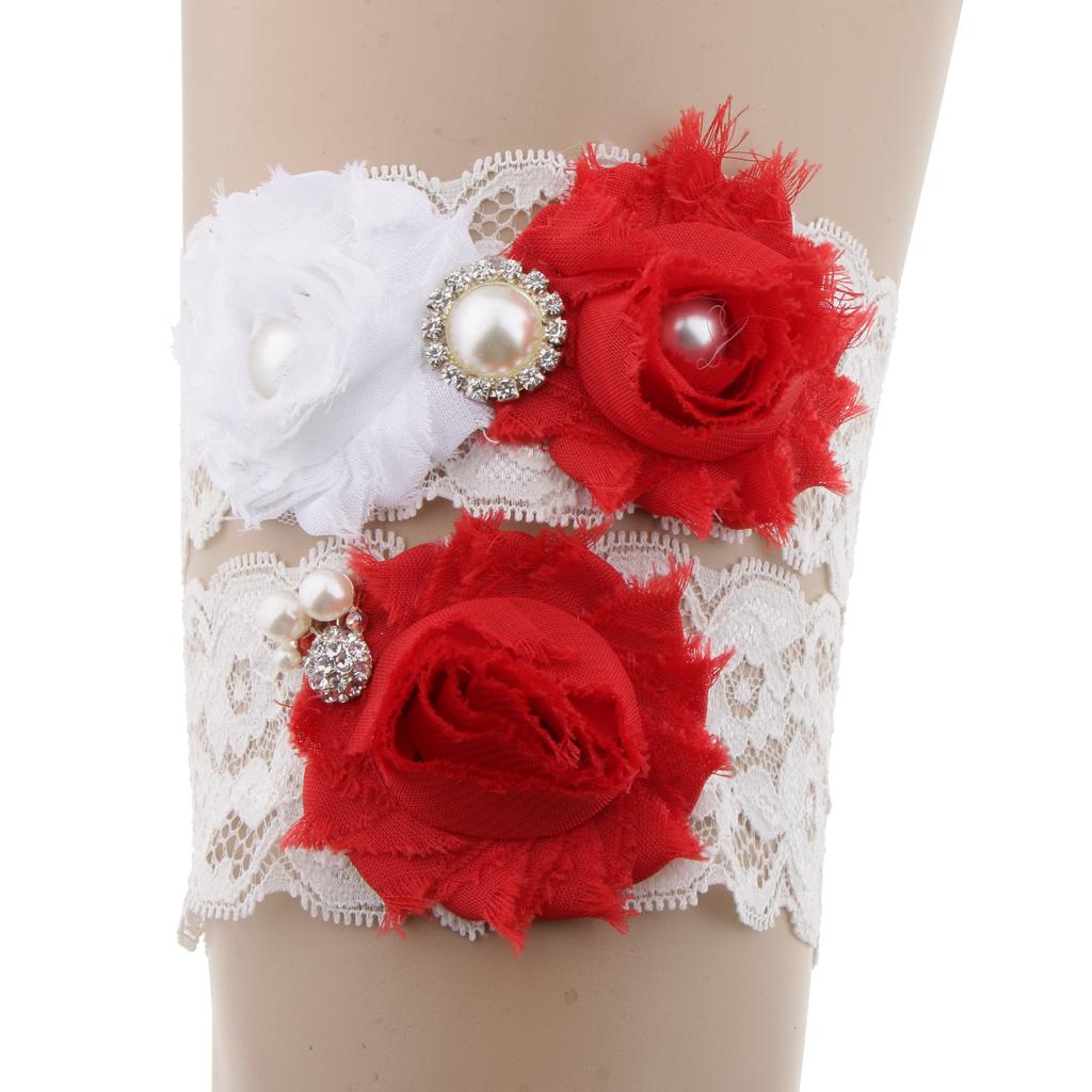 Wedding Bridal Lace Garter Set Flower Pearls Rhinestone Thigh Ring Supplier