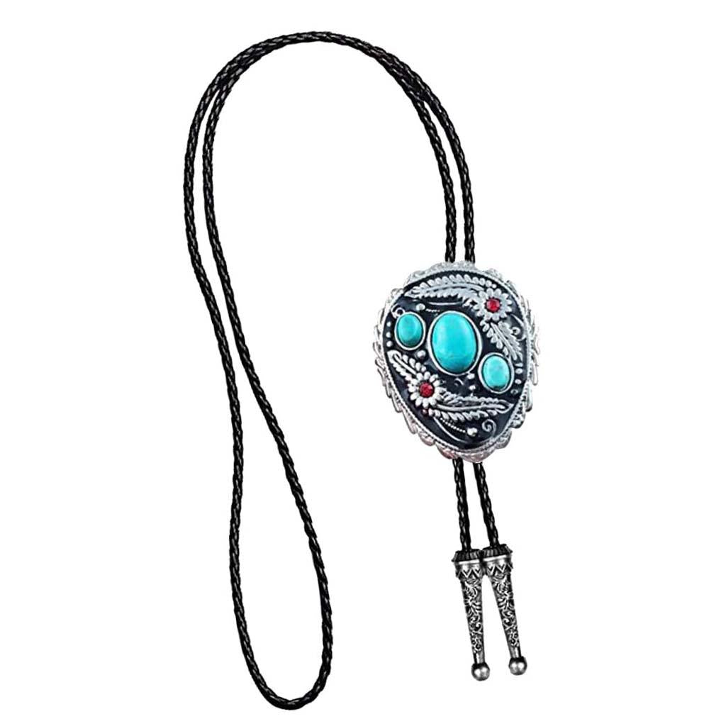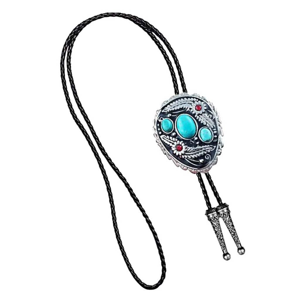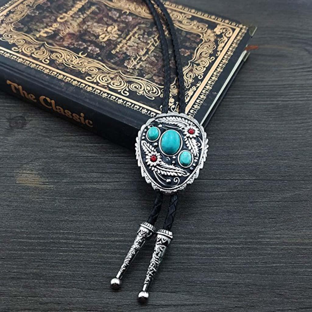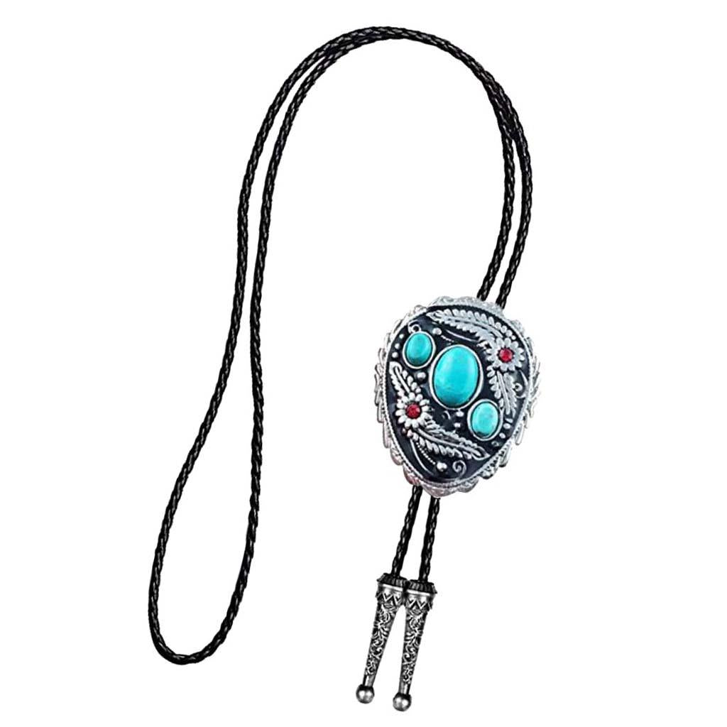 Western Cowboy Native American Turquoise Flower Pattern Bolo Ties Rodeo Necktie
