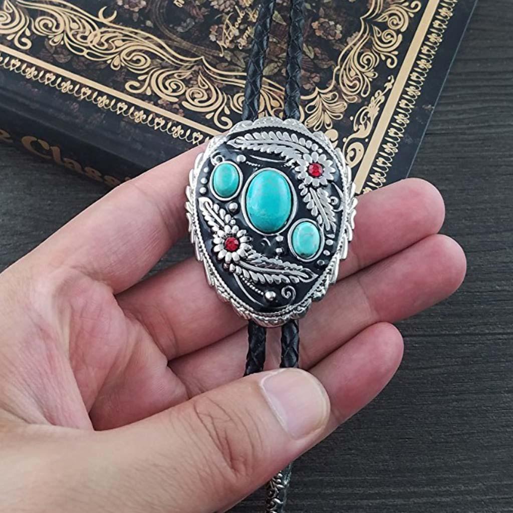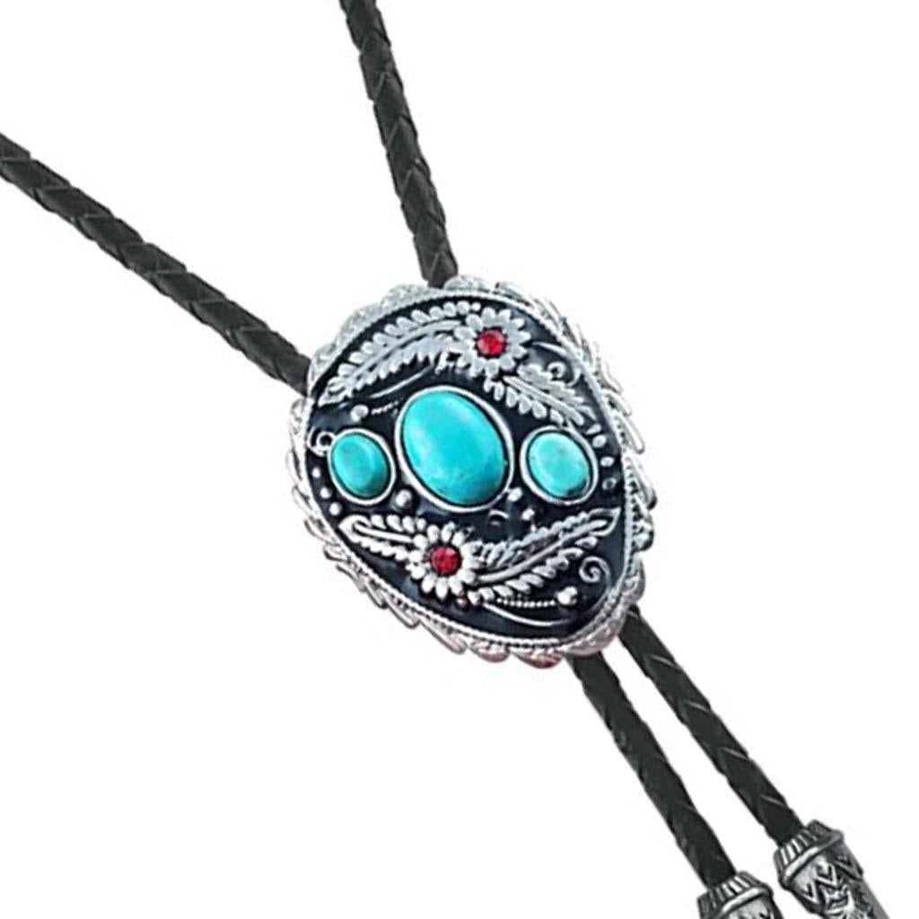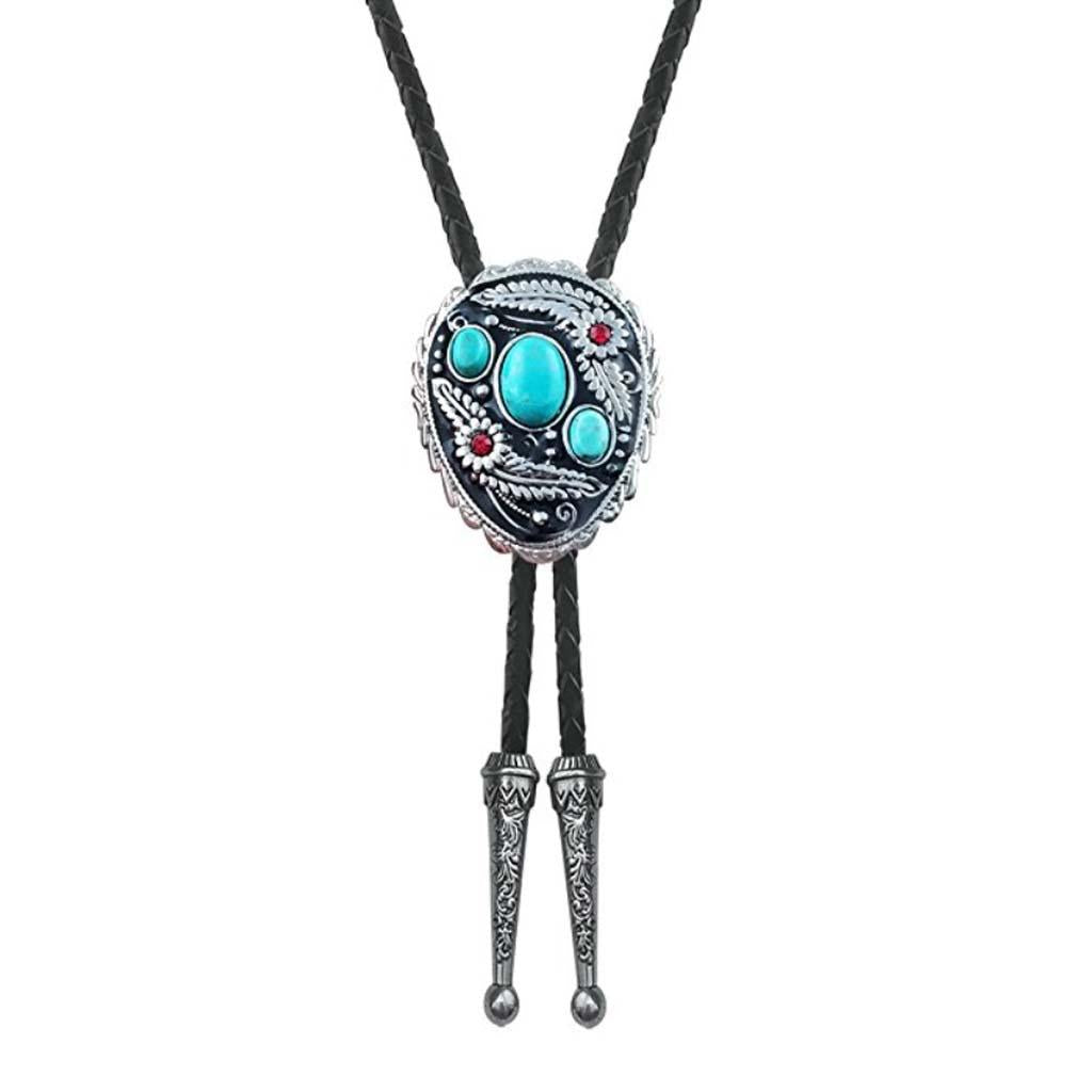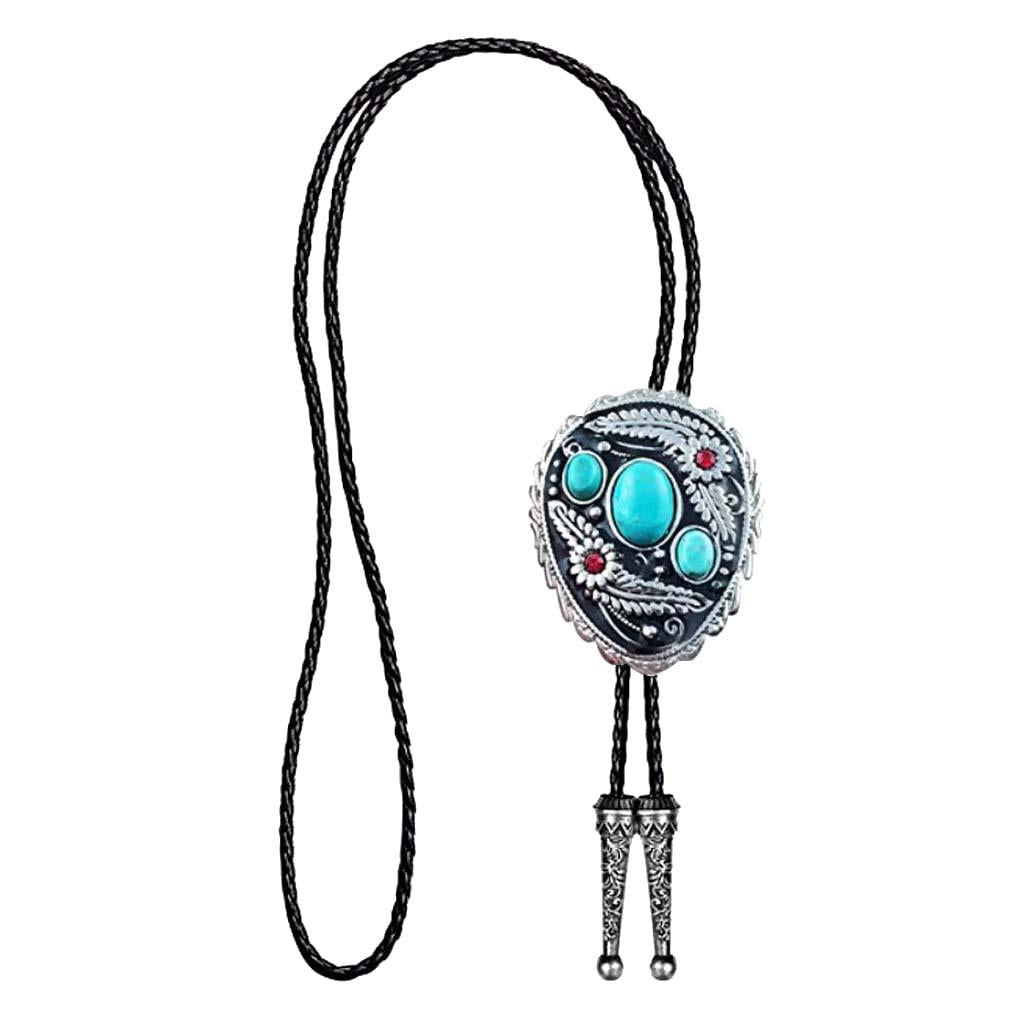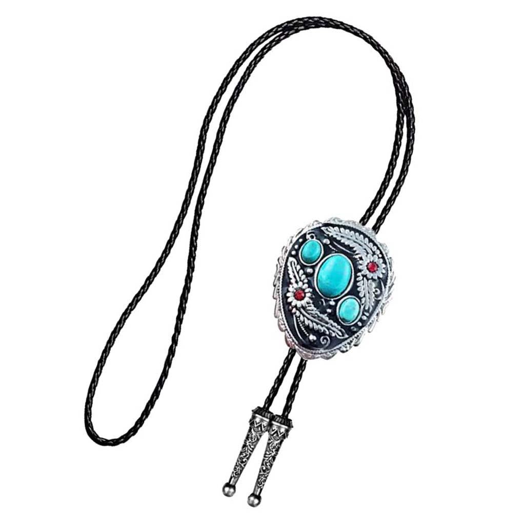 Western Cowboy Native American Turquoise Flower Pattern Bolo Ties Rodeo Necktie