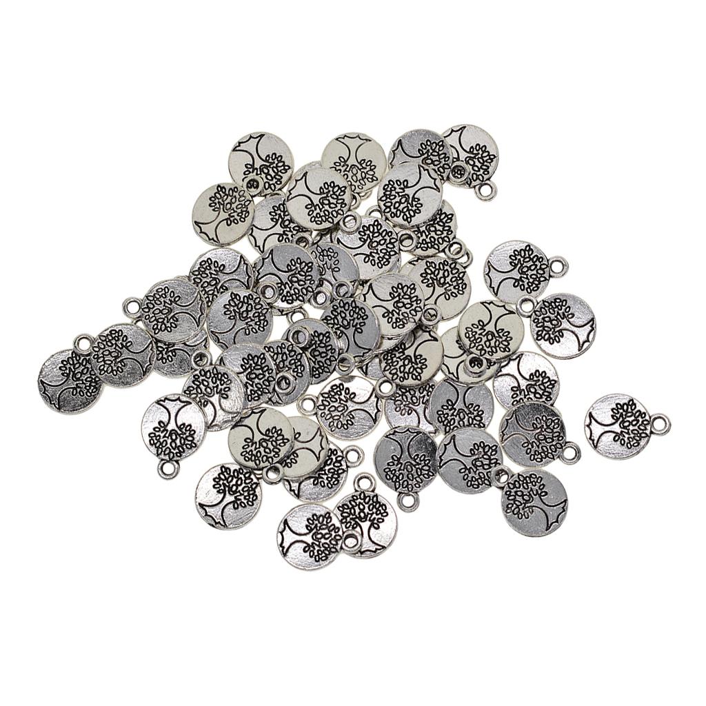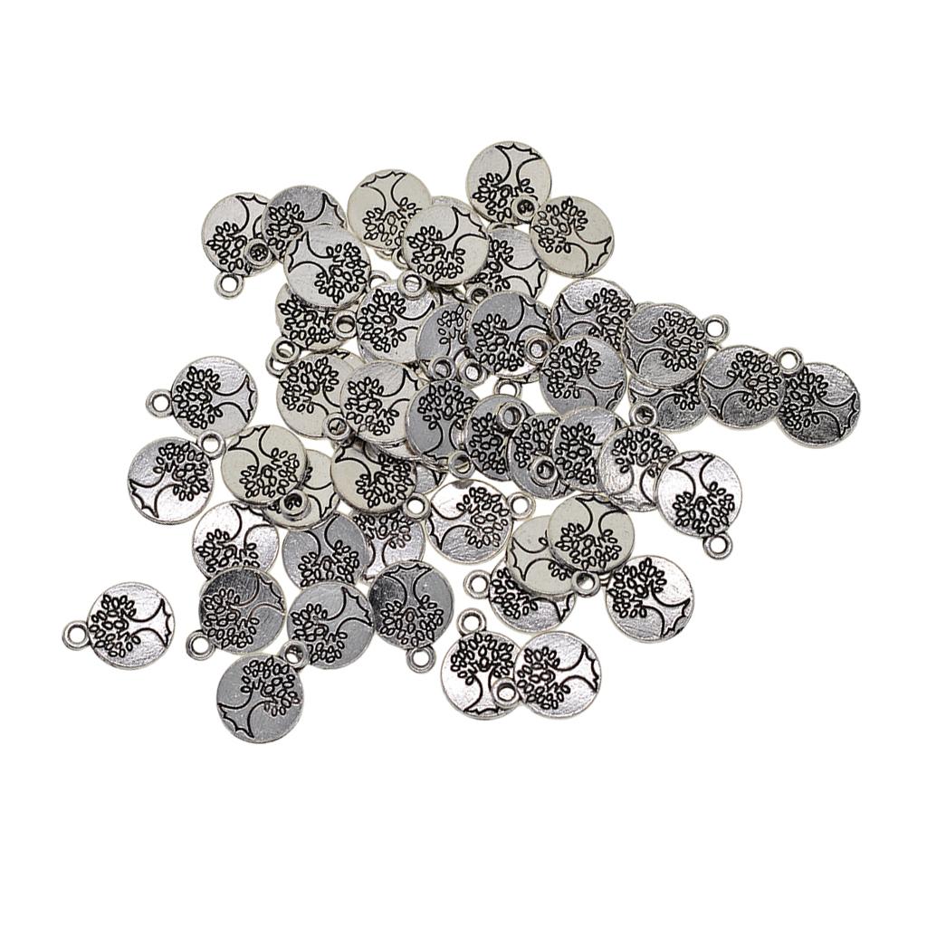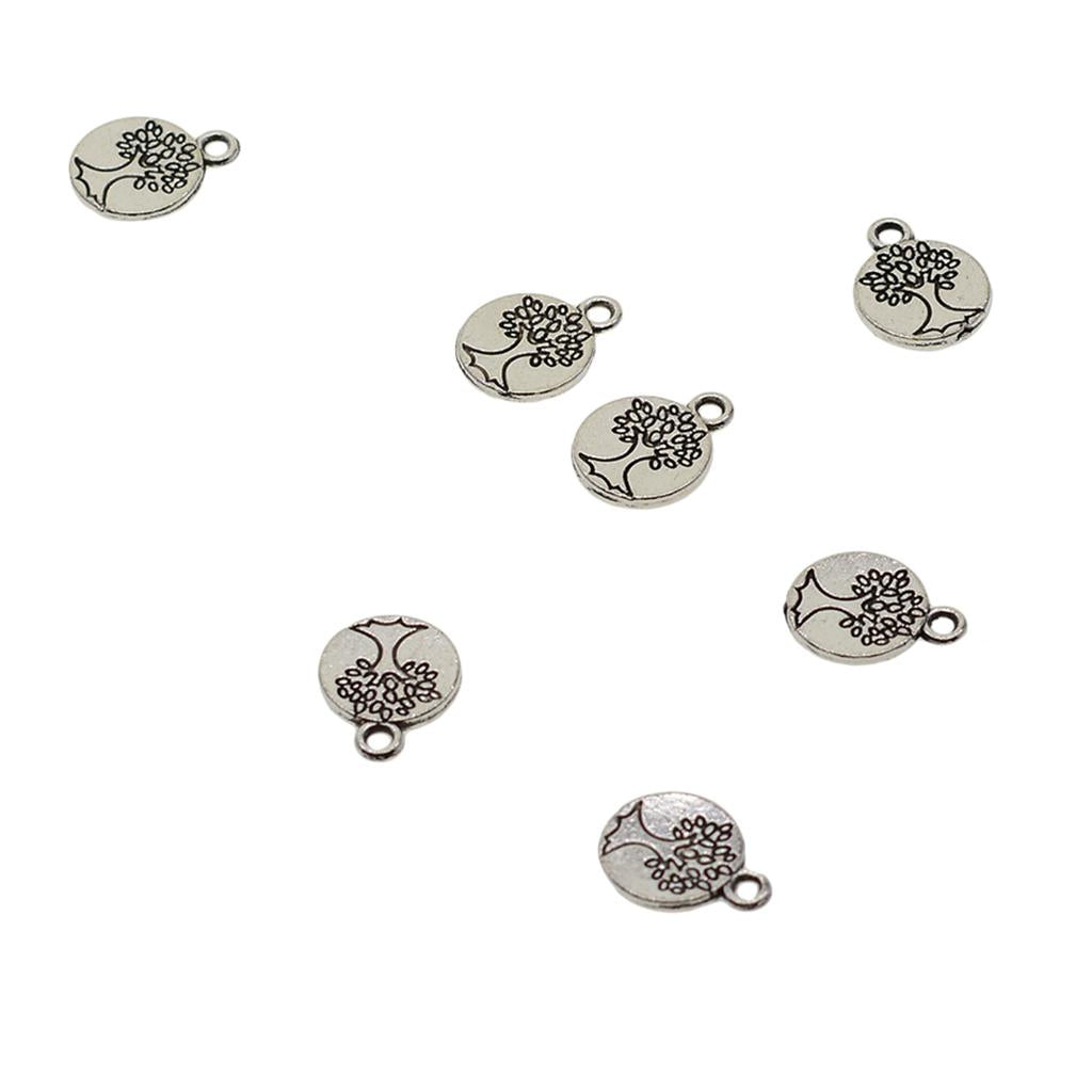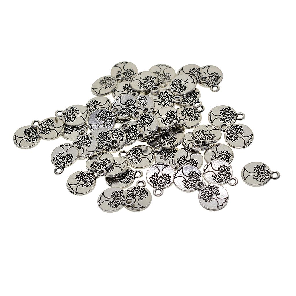 Wholesale Bulk Lots 50 Pieces Alloy Tibetan Silver Plated Tree of life Charms Pendants Spacer Beads for Jewelry Making DIY Handmade Craft Supplies, 15x11.5mm