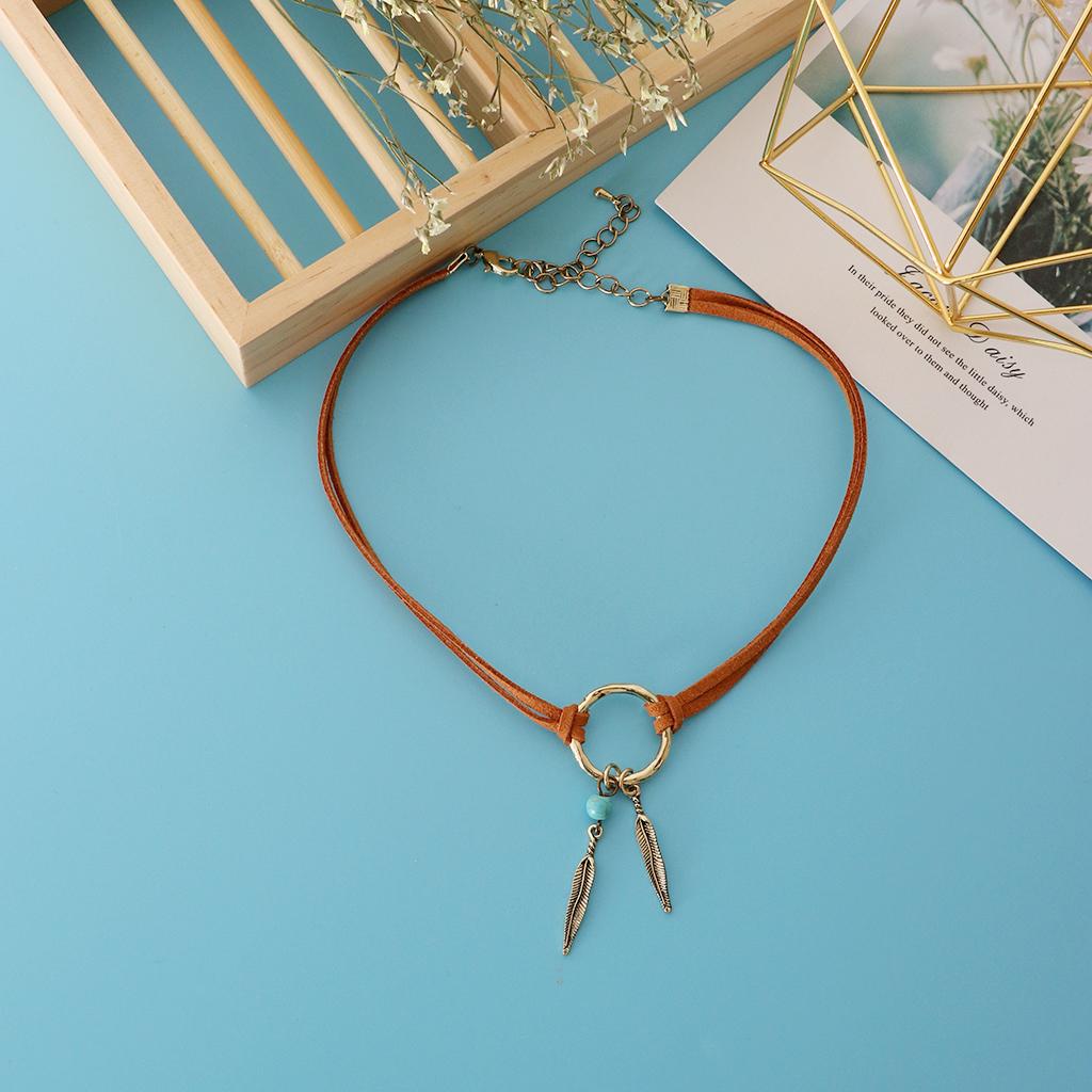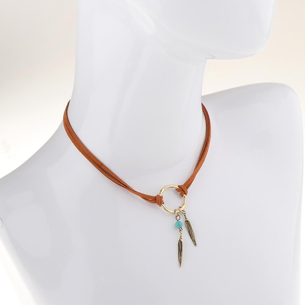Gothic Victorian Punk Velvet Choker Necklace ,round circle ring Pendant With Turquoise bead and leaf tassel
