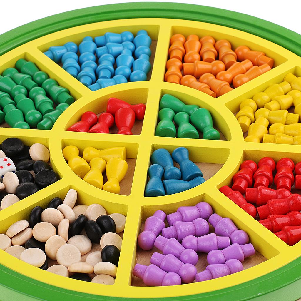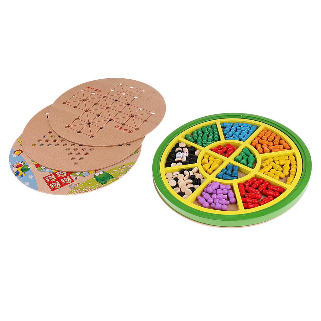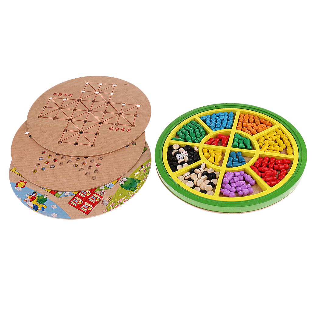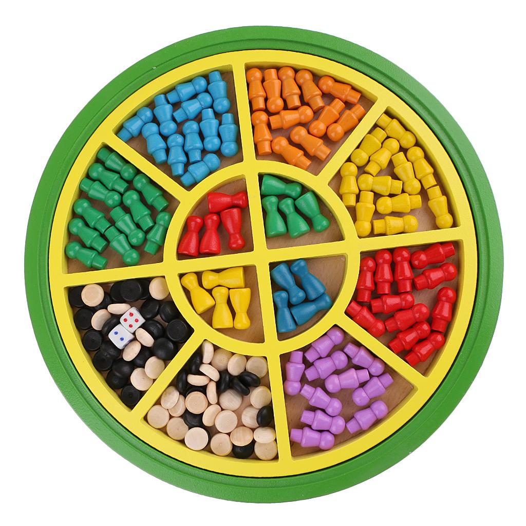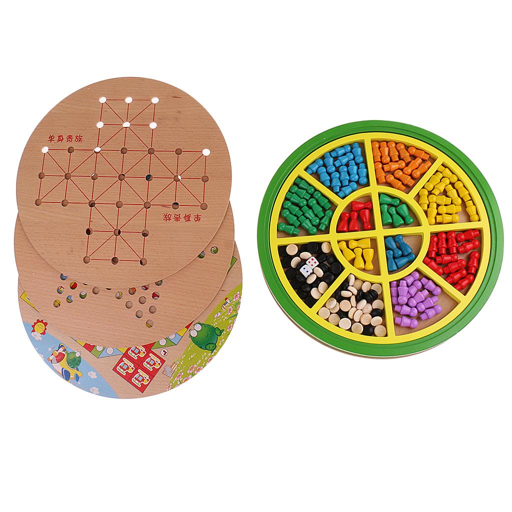 Five uniting chess: Flight chess, Gomoku, Animal chess, Snakes and Ladders, Fox and Geese with seperate compartments for neat storage