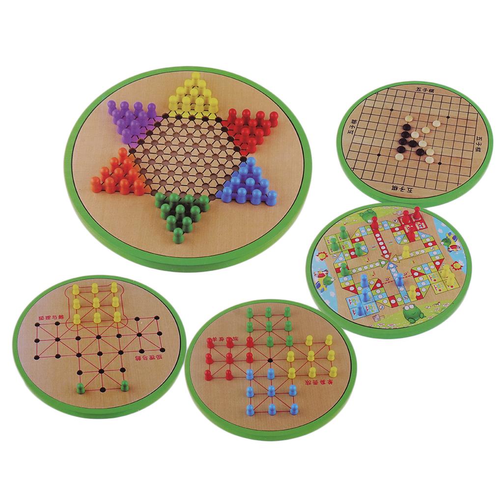 Wood 5 in 1 Set Chess Board Game Checkerboard Strategy Kids Educational Toy
