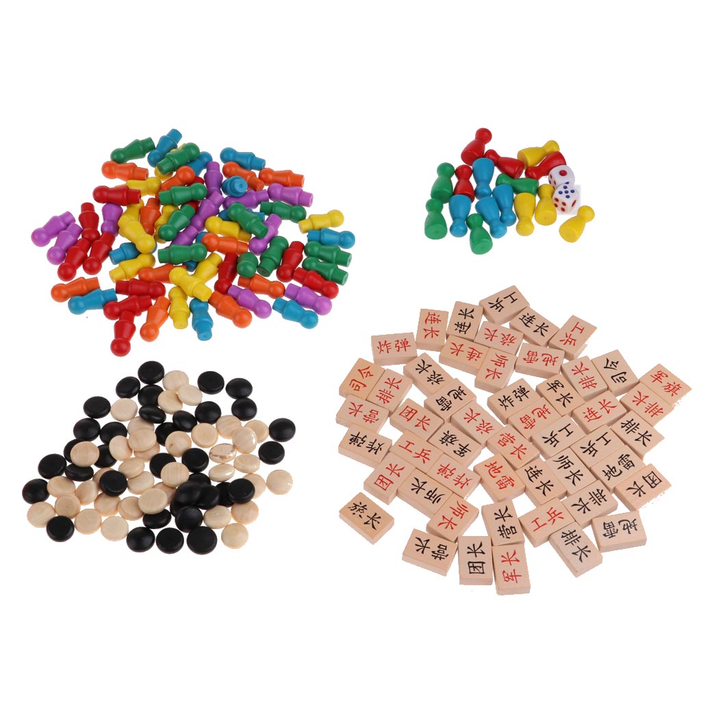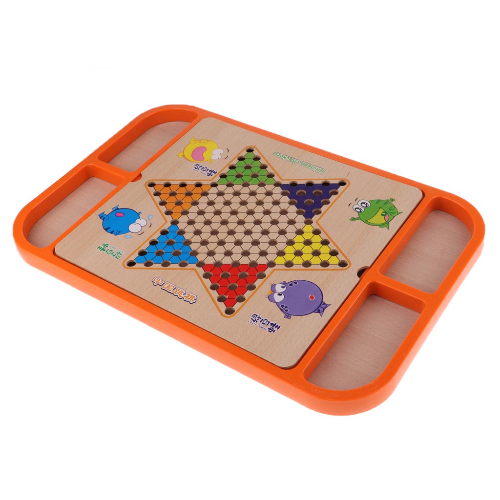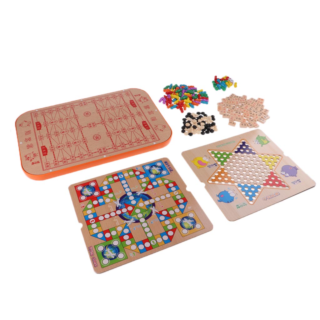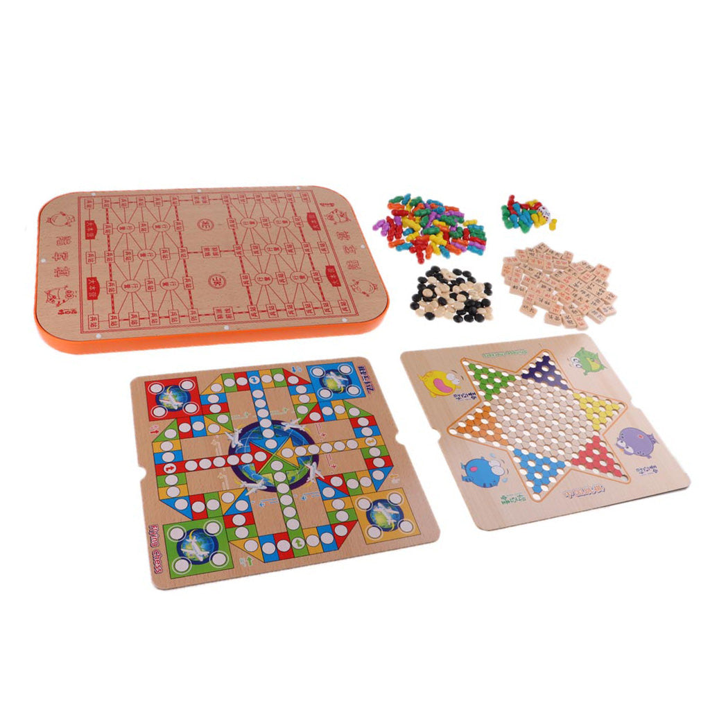 6 In 1 Wooden Chess Pieces Game Board Chinese Checkers Gobang Stratego for Kids Adults Entertainment