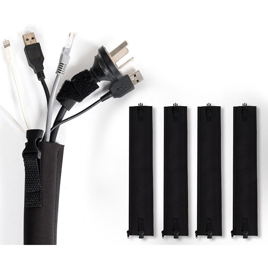 4 Pieces Cable Management Sleeve , Cord Management System and Zipper Buckle for TV / Computer / Home Entertainment, 19-20 inch Flexible Cable Sleeve Wrap Cover Organizer Black