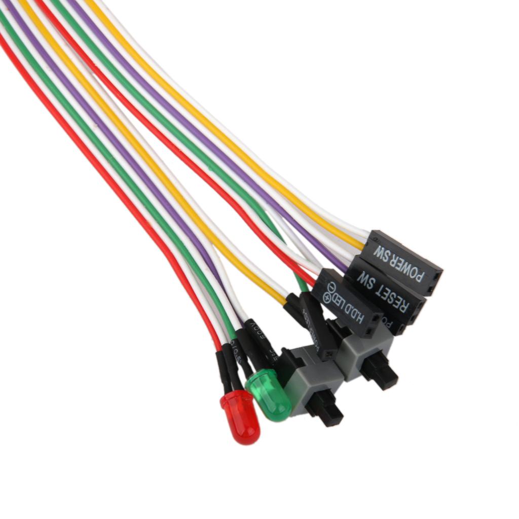 PC ATX Power Supply Reset 2 Switch Cable with 2 LED Lights