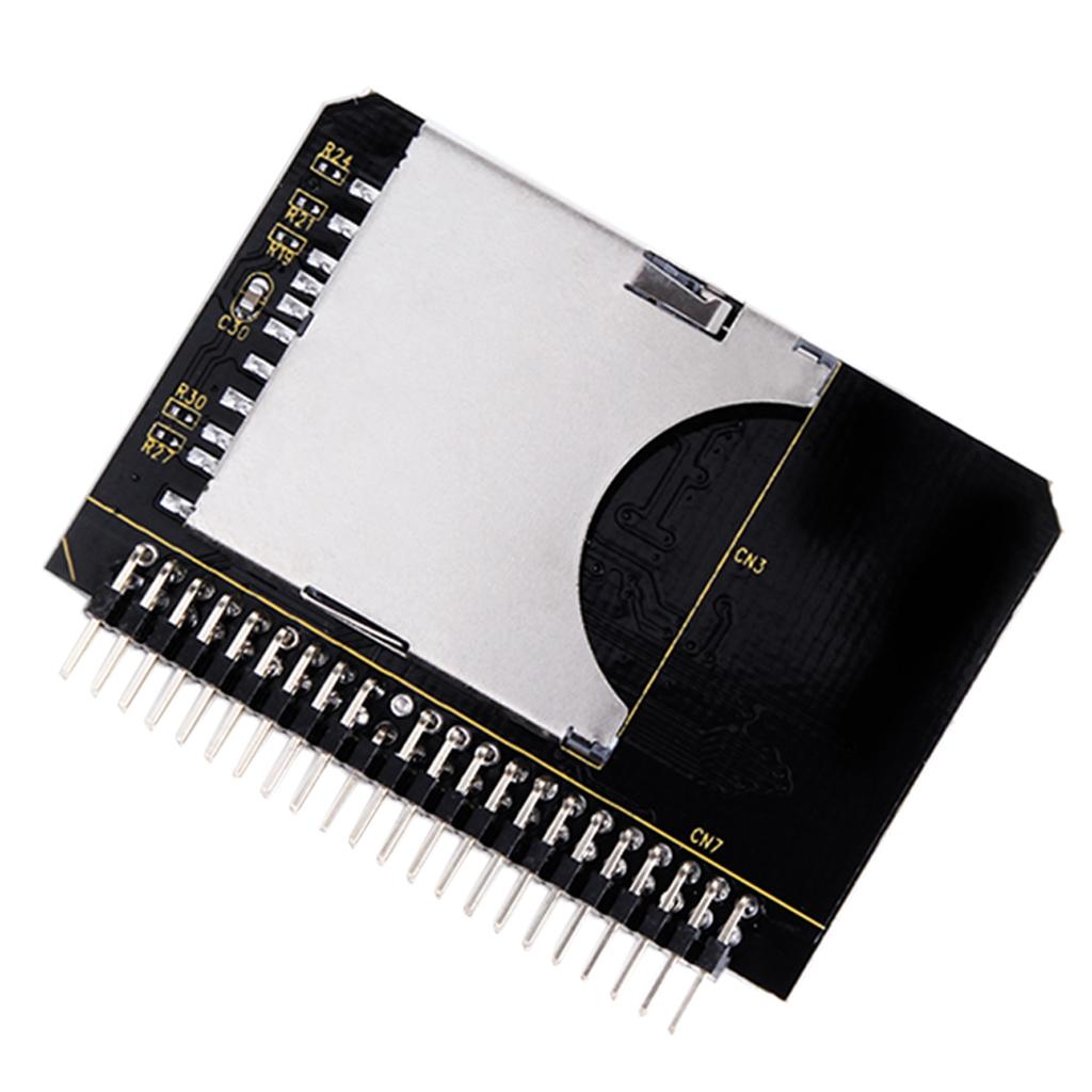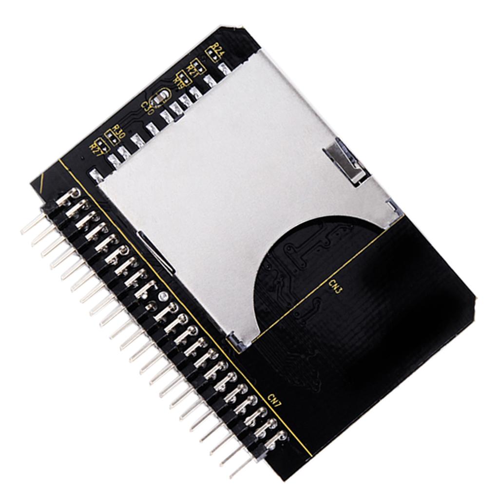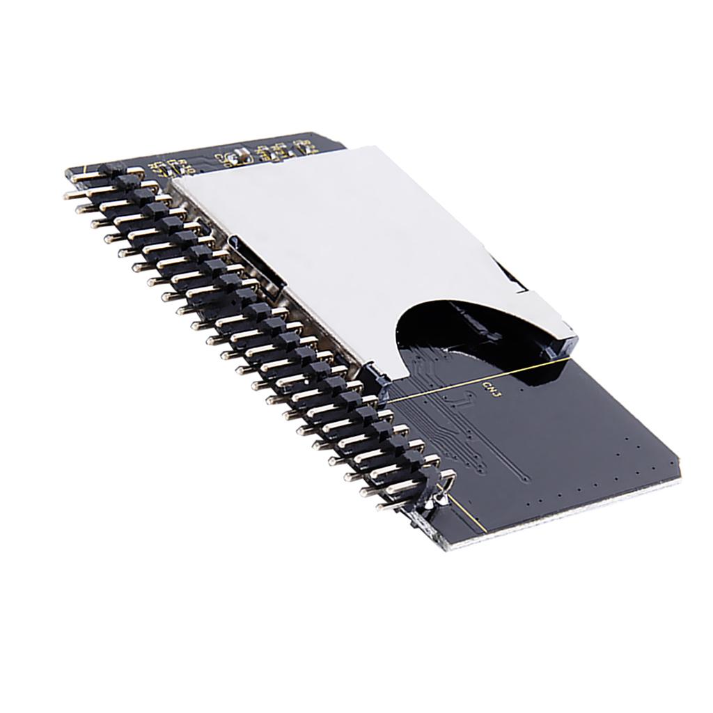 This riser card can be connected to the standard ATA IDE interface with an SD card as a standard IDE storage device.