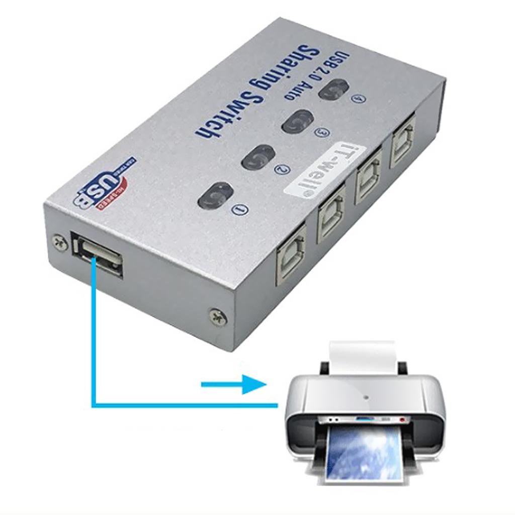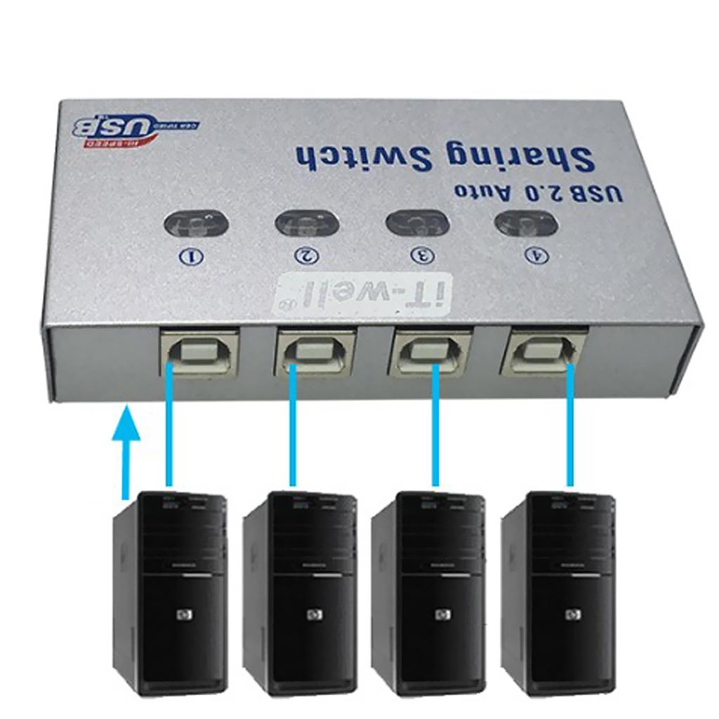 USB 2.0 Auto Sharing Switch is a great solution for sharing USB devices like USB printer, scanner, curve plotter, multifunction printer, with four computers.