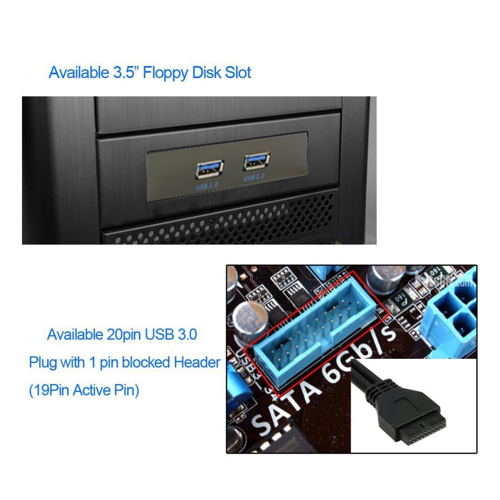 This bay allows you to convert an unused 3.5" floppy drive space into two USB 3.0 ports,come with 2-port usb 3.0 hub combo interface.
