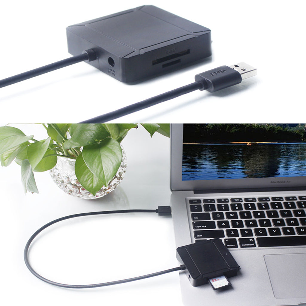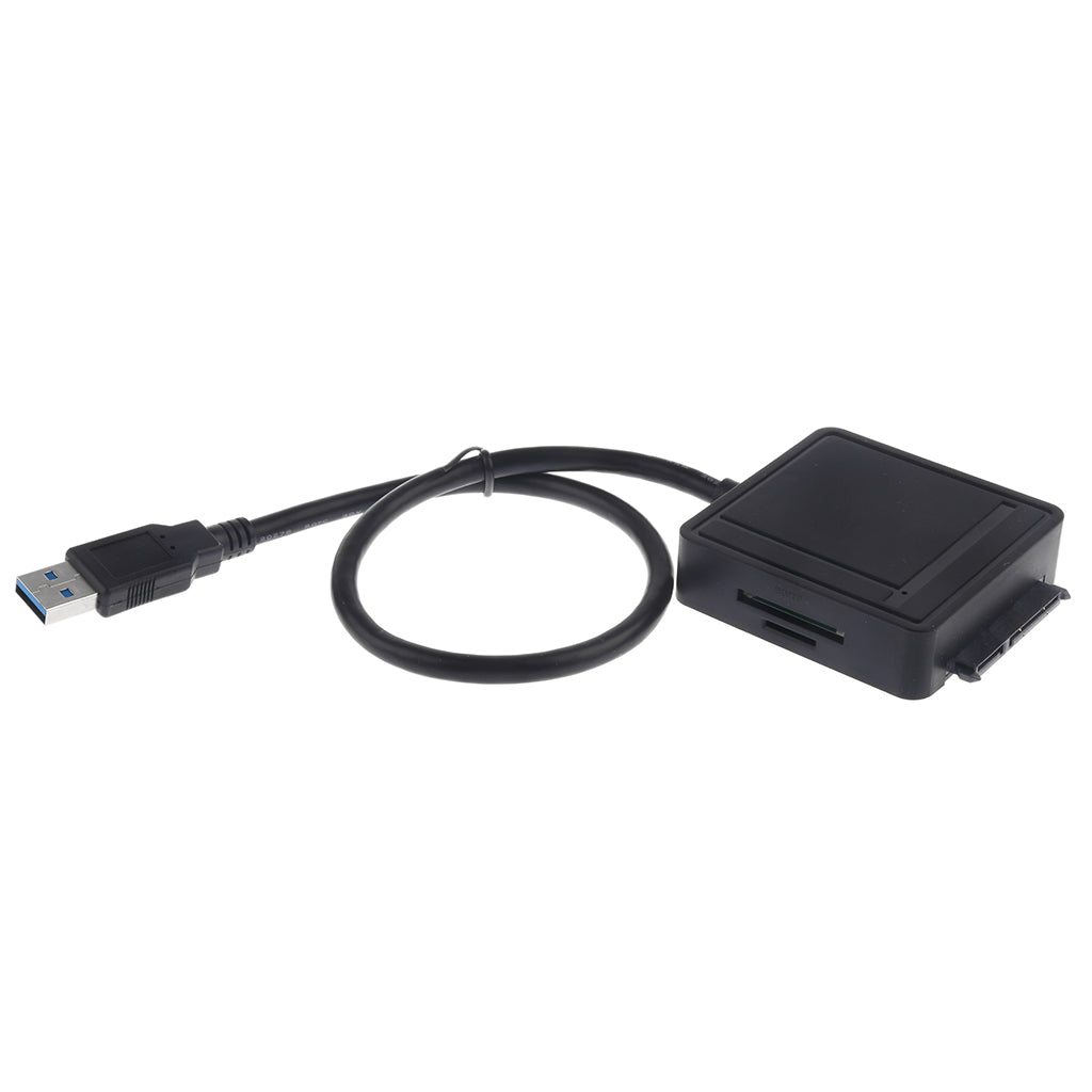 USB 3.0 to SATA Adapter provides a compact solution for adding hard drive via SATA 3, 2 x USB 3.0 devices and TF/SD card reader to your PC, tablet, Chromebook, Ultrabook, or game console.