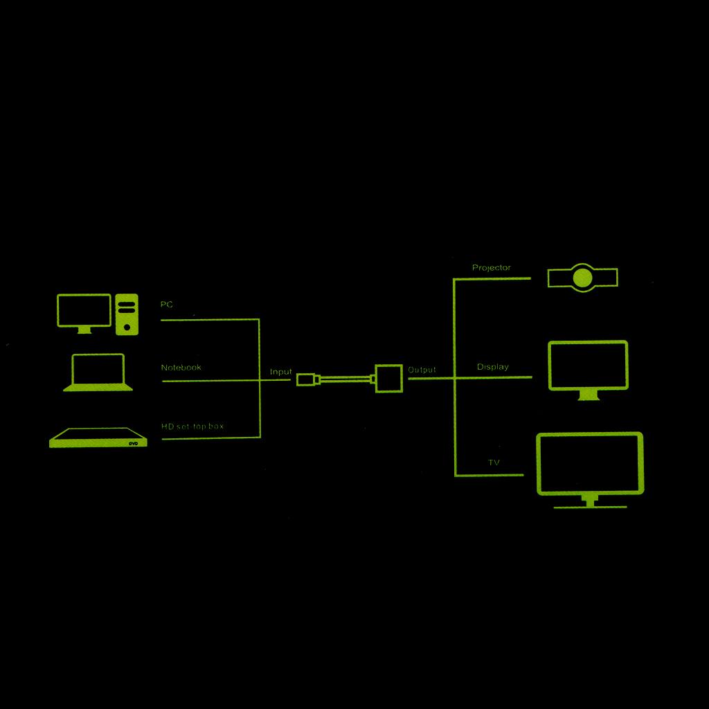 It applied to the desktop computer, laptop, DVD, Set TOP Box, player and so on VGA signal resource input.