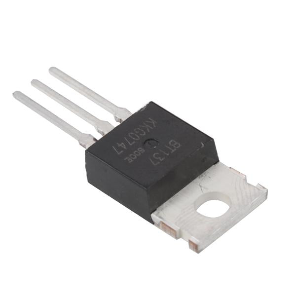 BT137-600E triacs thyristor, 3-pin design, TO-220 package. This BT137-600E triacs is widely used for frequency changing circuit, dimming / thermoregulation / speed regulation circuit and home appliance control circuit like electric fan, laundry machine, water dispenser, microwave oven, air conditioner, etc.