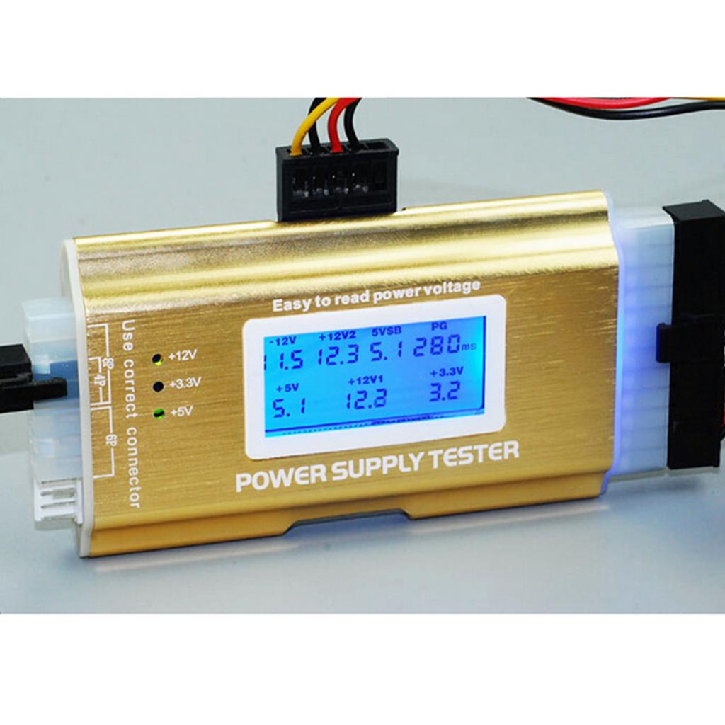 Laptop ATX Power Supply Tester for 20 & 24 Pin PSU Diagnostic Tester Tool With LCD Display Aluminium Gold Cover