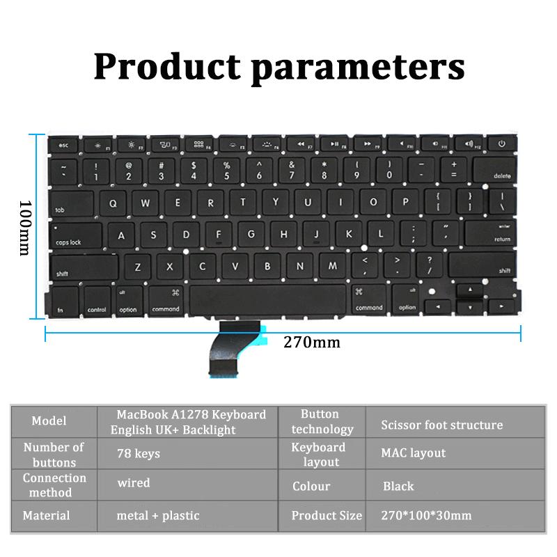 Notebook Laptop Keyboard UK Layout Backlight For Apple MacBook Pro 13 Inch A1278