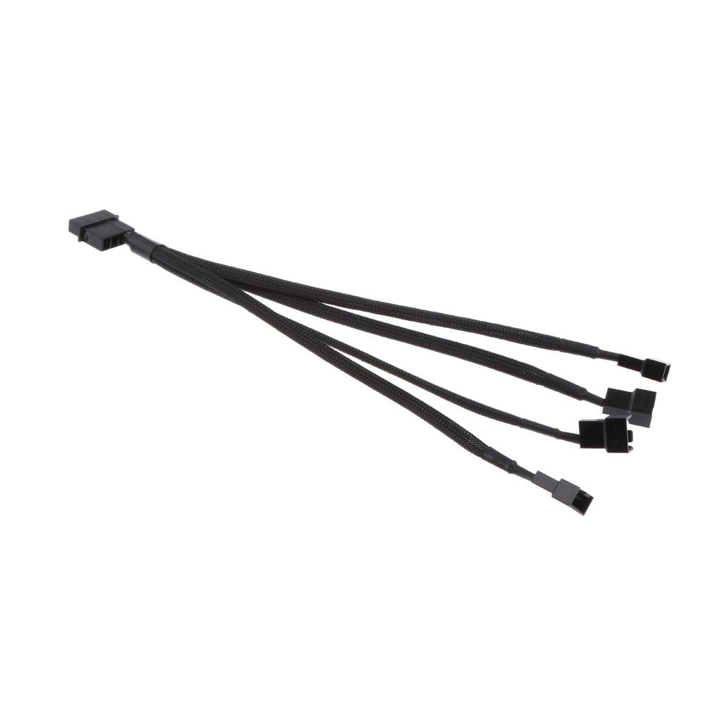 1PCS 3/4 pin Fan Splitter Y Extension Power Cable Sleeved 1 to 4Ports