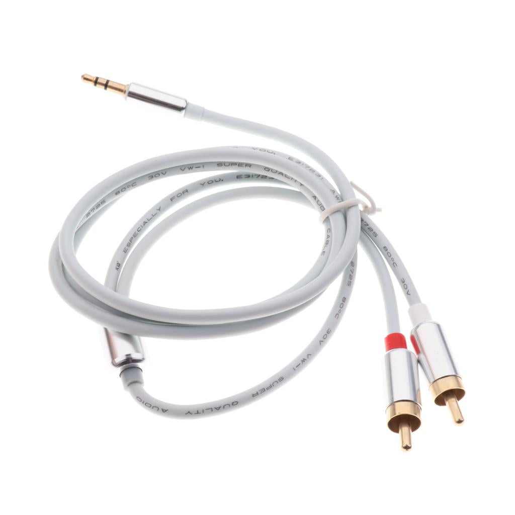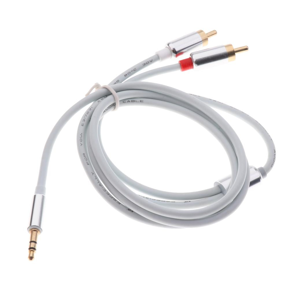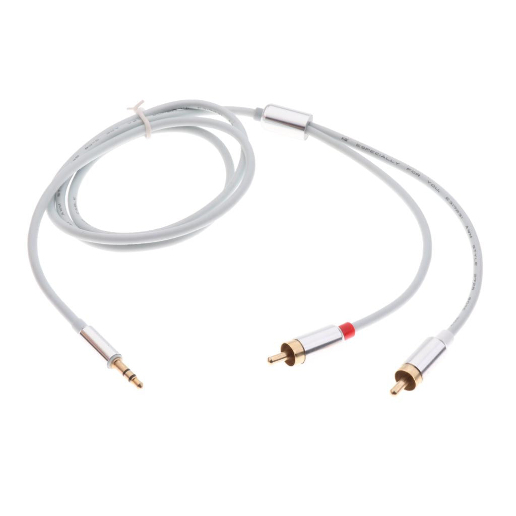 3.5mm Stereo Male Plug to 2 RCA Audio Male Adapter Speaker Cable Cord White