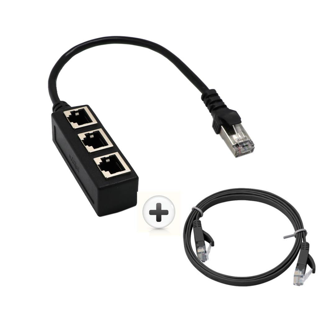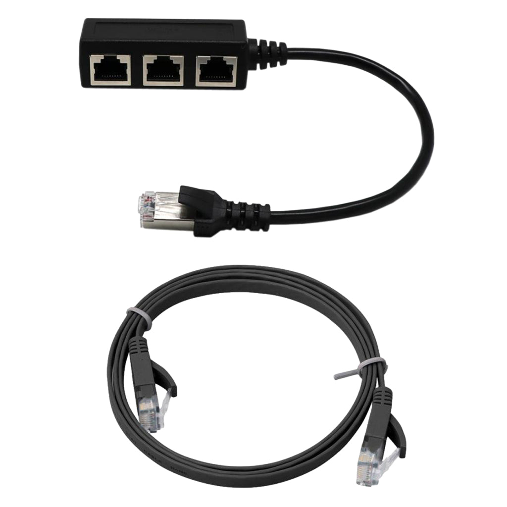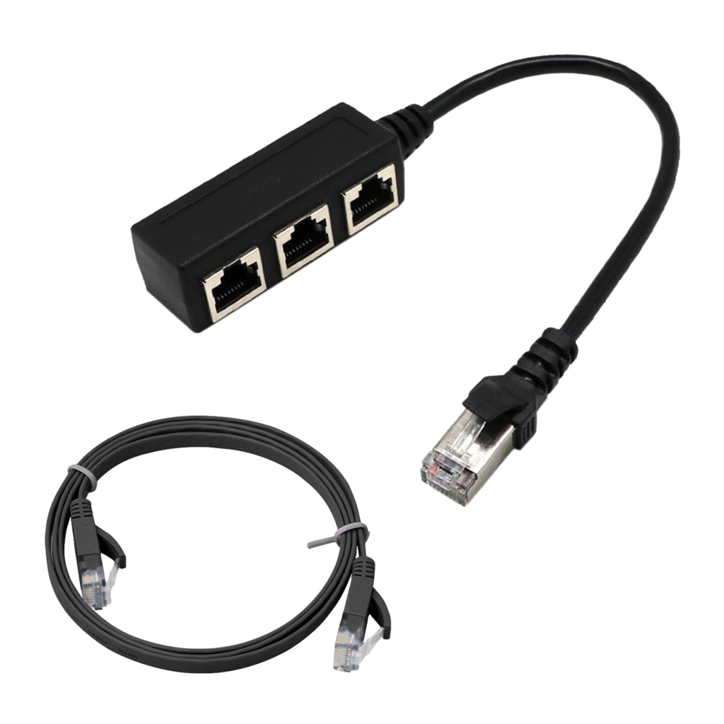 RJ45 Male to 3 RJ45 Female Port Network Extender Cable Splitter& Cat 6 Cable