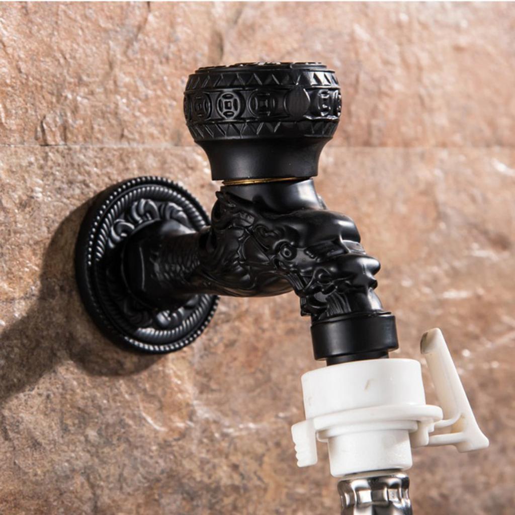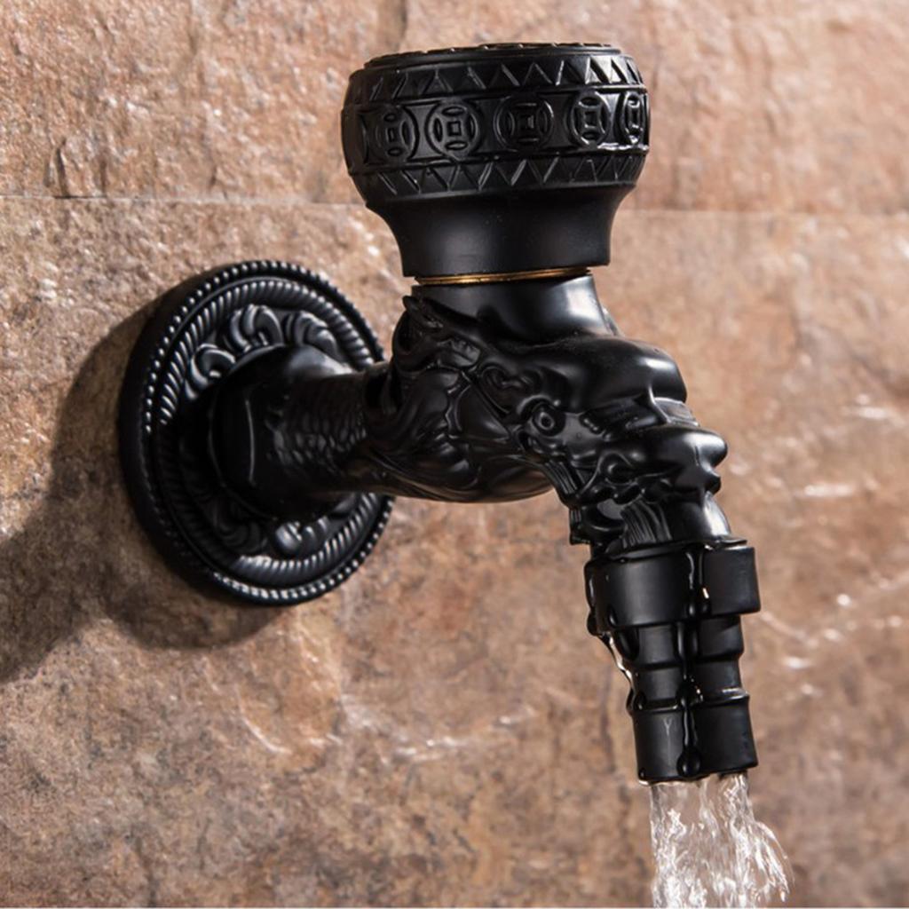 Dragon Carved Antique Brass Water Faucet Single Handle Sink Tap Wall-mounted