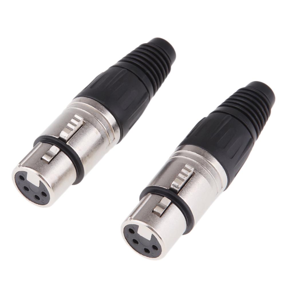 2 Pieces Metal 4Pin/4P XLR Connector Plug Female Audio Microphone Connector