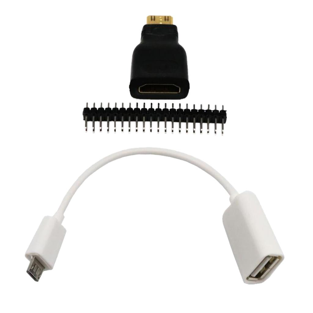 Mini-HDMI Male to Female Adapter + Micro USB to USB Cable Wire + Male Header GPIO Pins Assorted