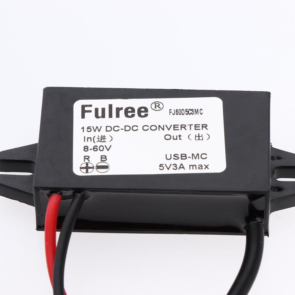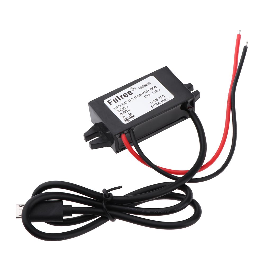 Input: DC 8-60V; Output: Micro USB, Max. DC 5V 3A, 15W.
