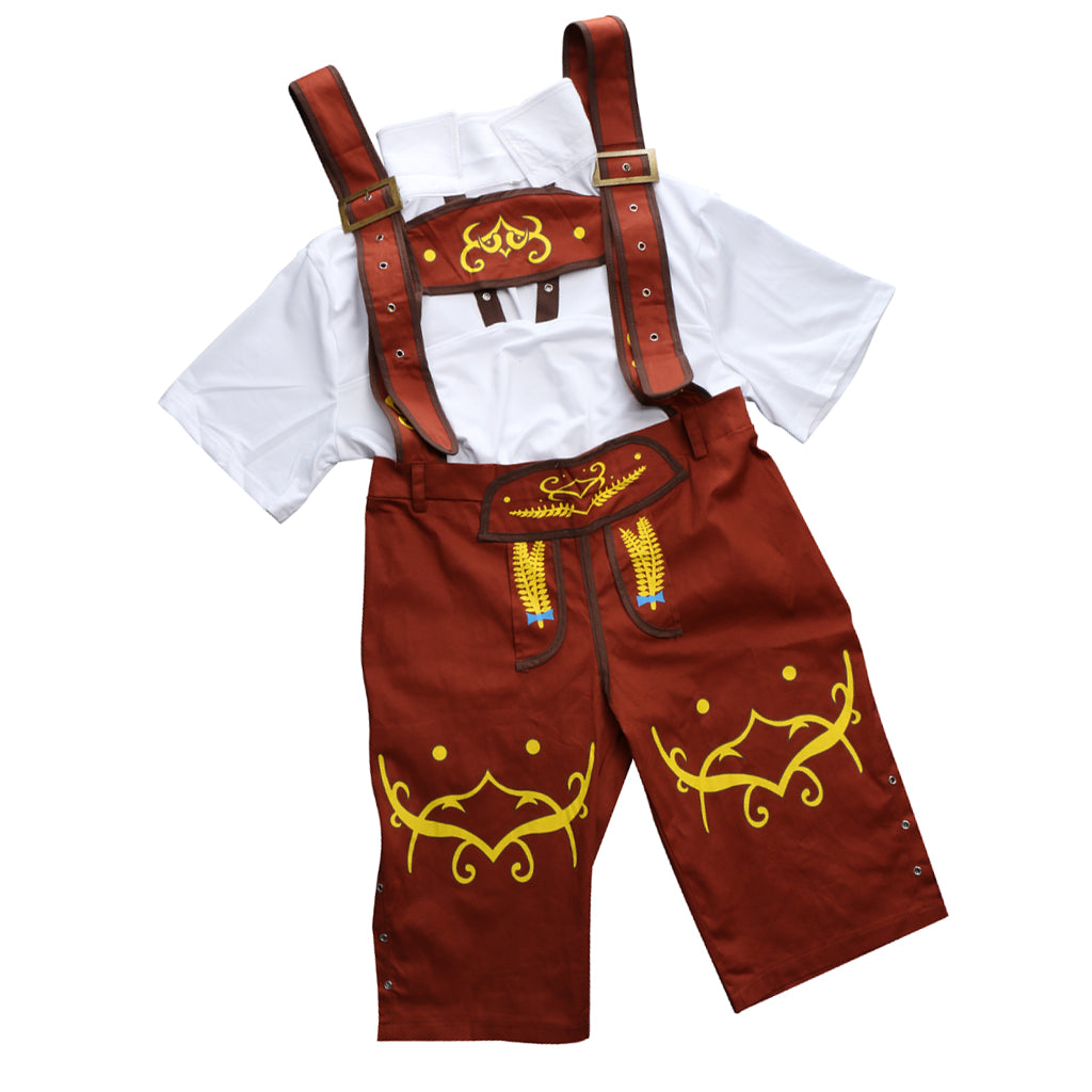 German beer guy style, printed german design, attractive men's Oktoberfest pullover shirt with suspender short cosplay costume set.