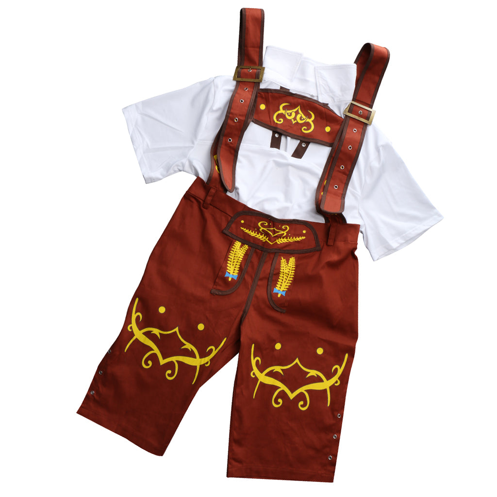 German beer guy style, printed german design, attractive men's Oktoberfest pullover shirt with suspender short cosplay costume set.