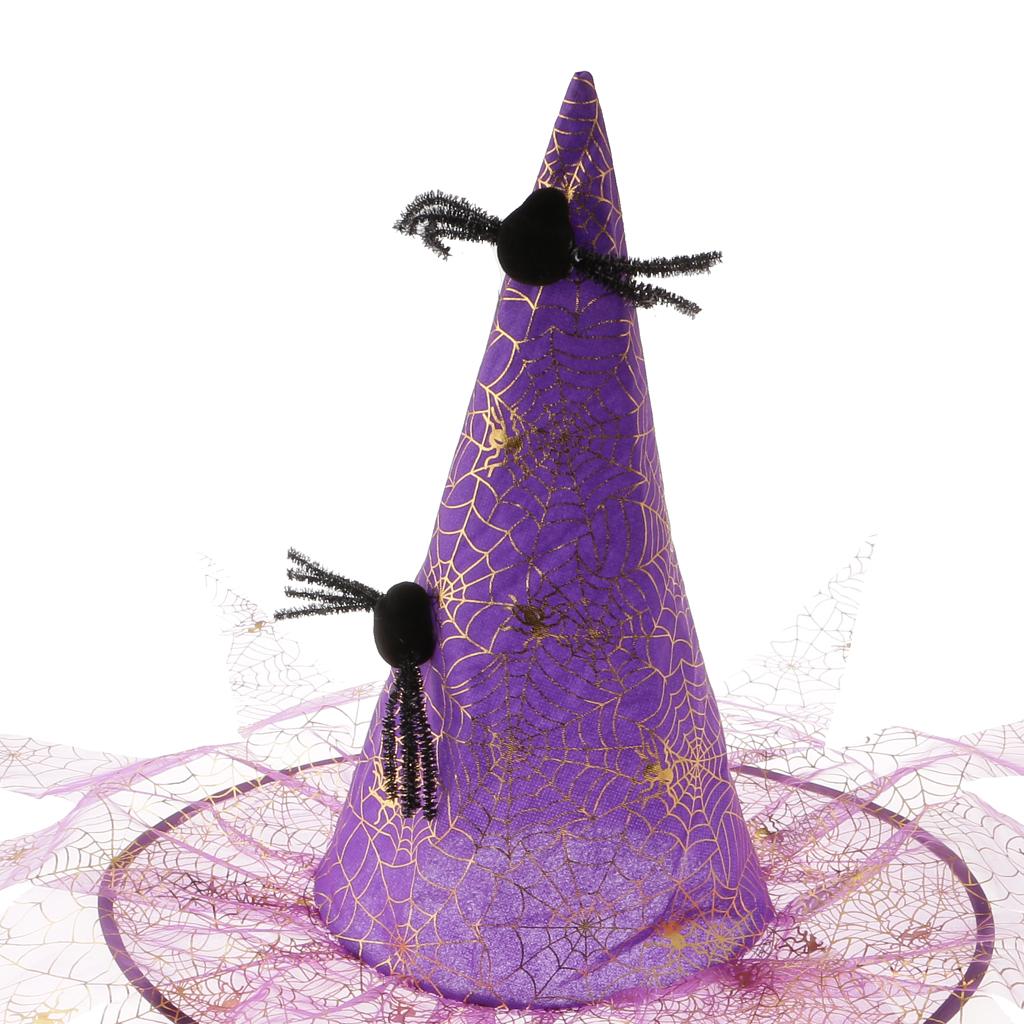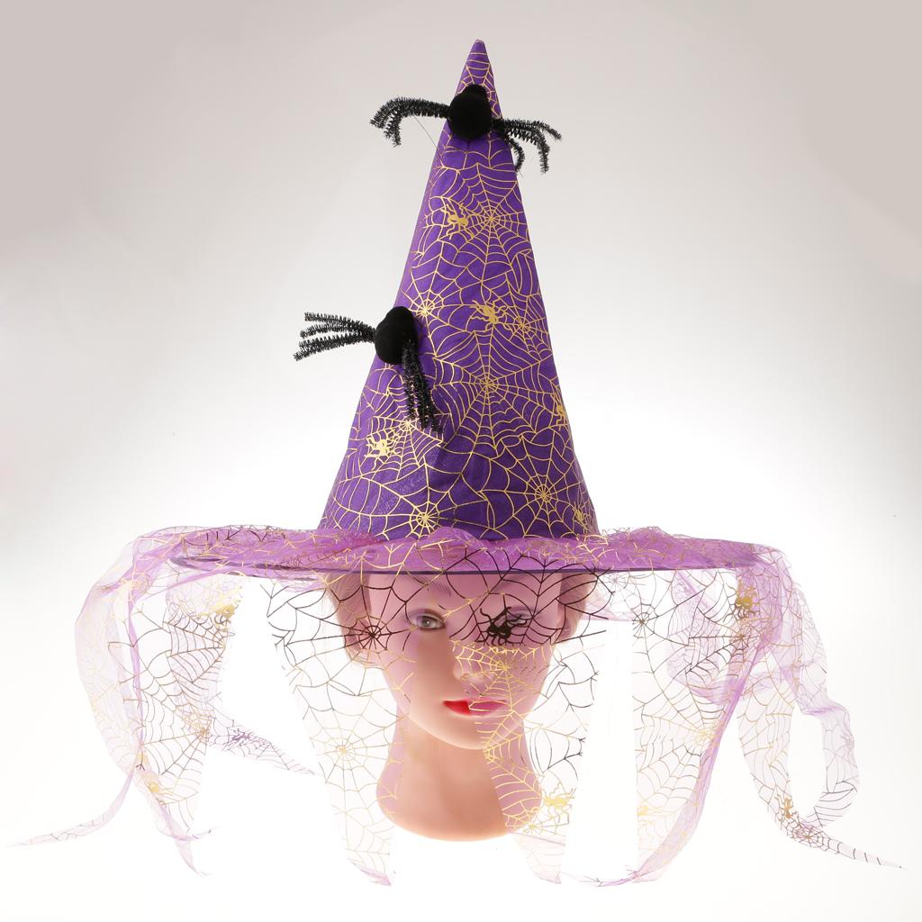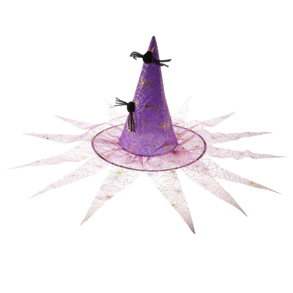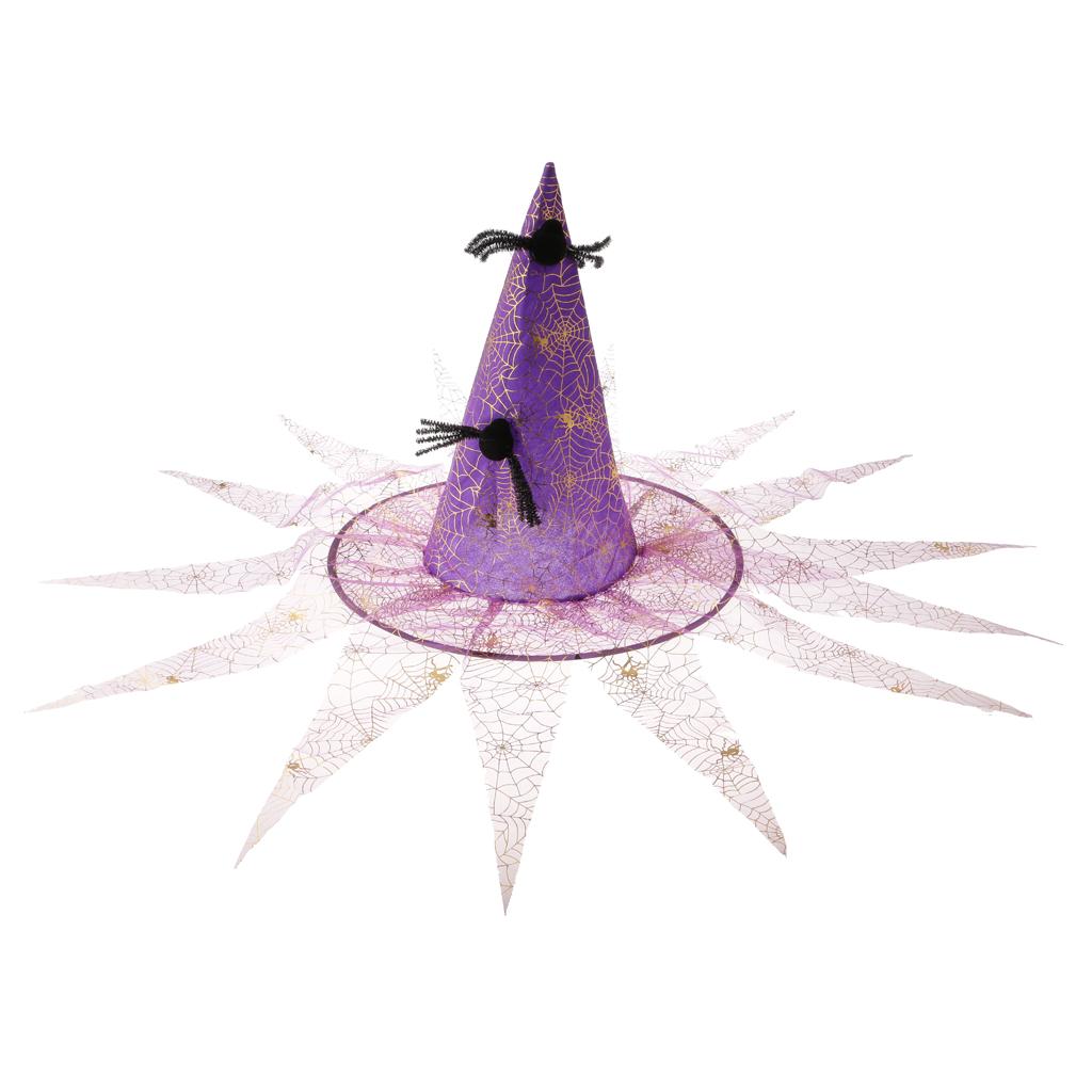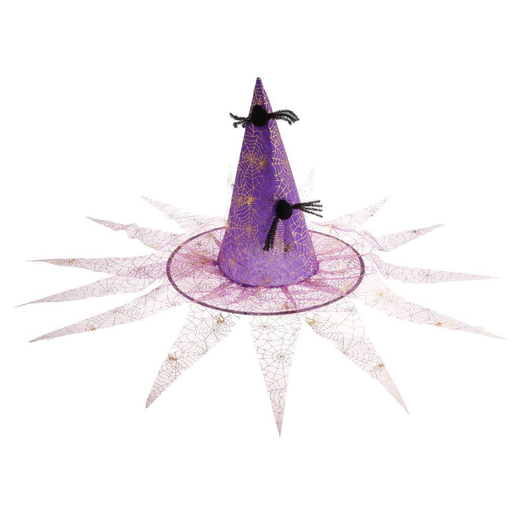 Kids Witch Hat Wizard Headpiece for Fancy Dress Party Purple Spider