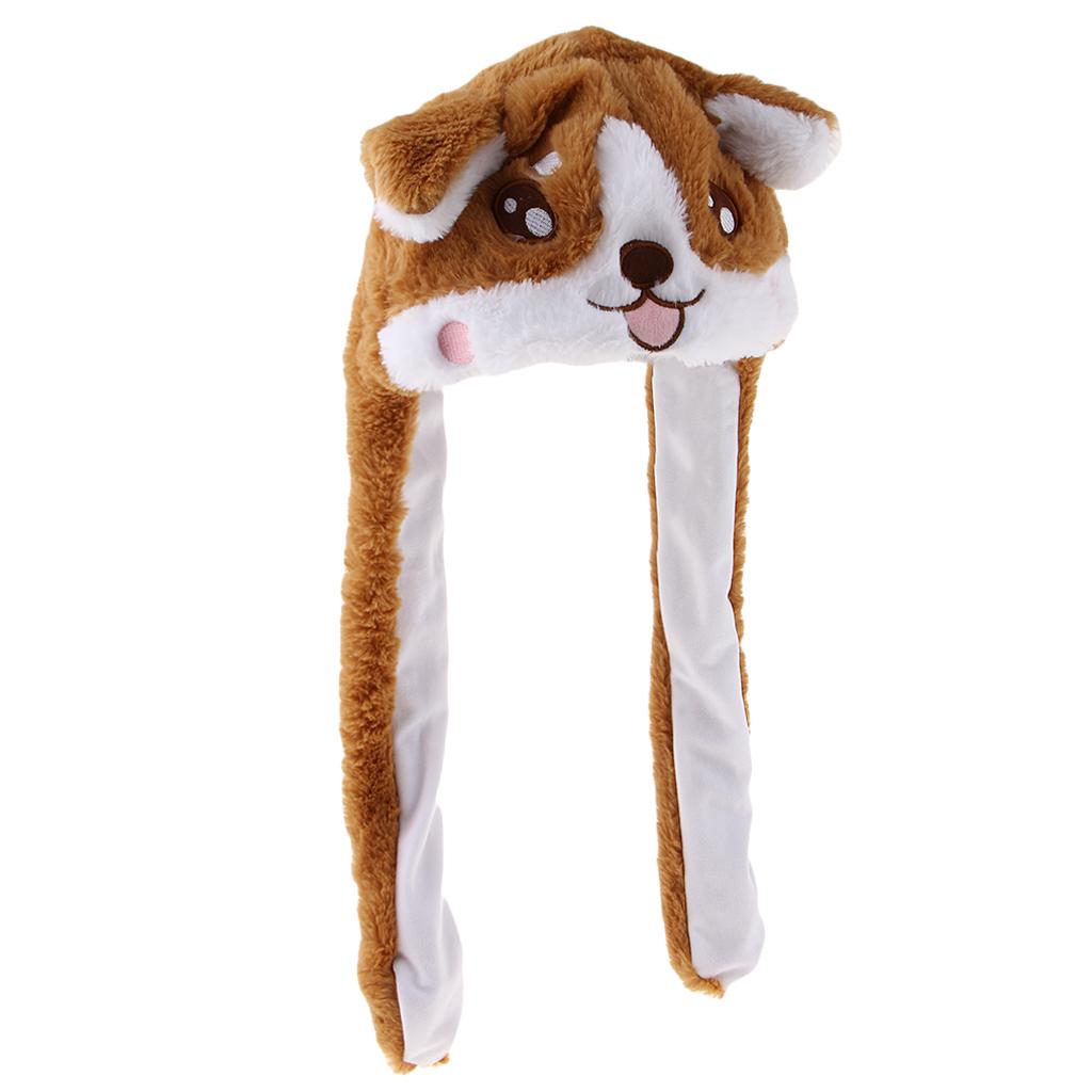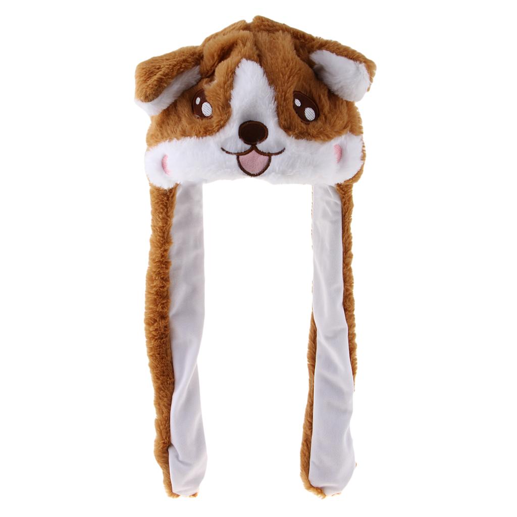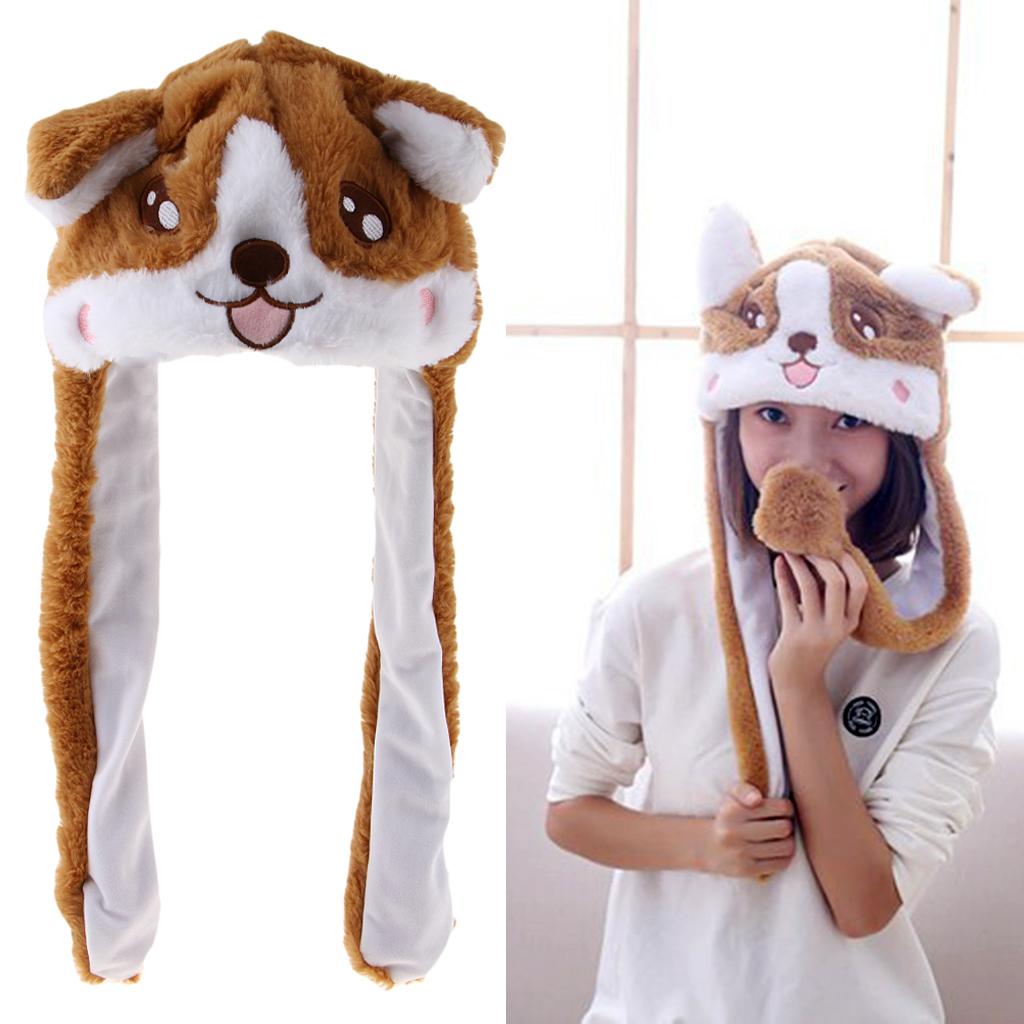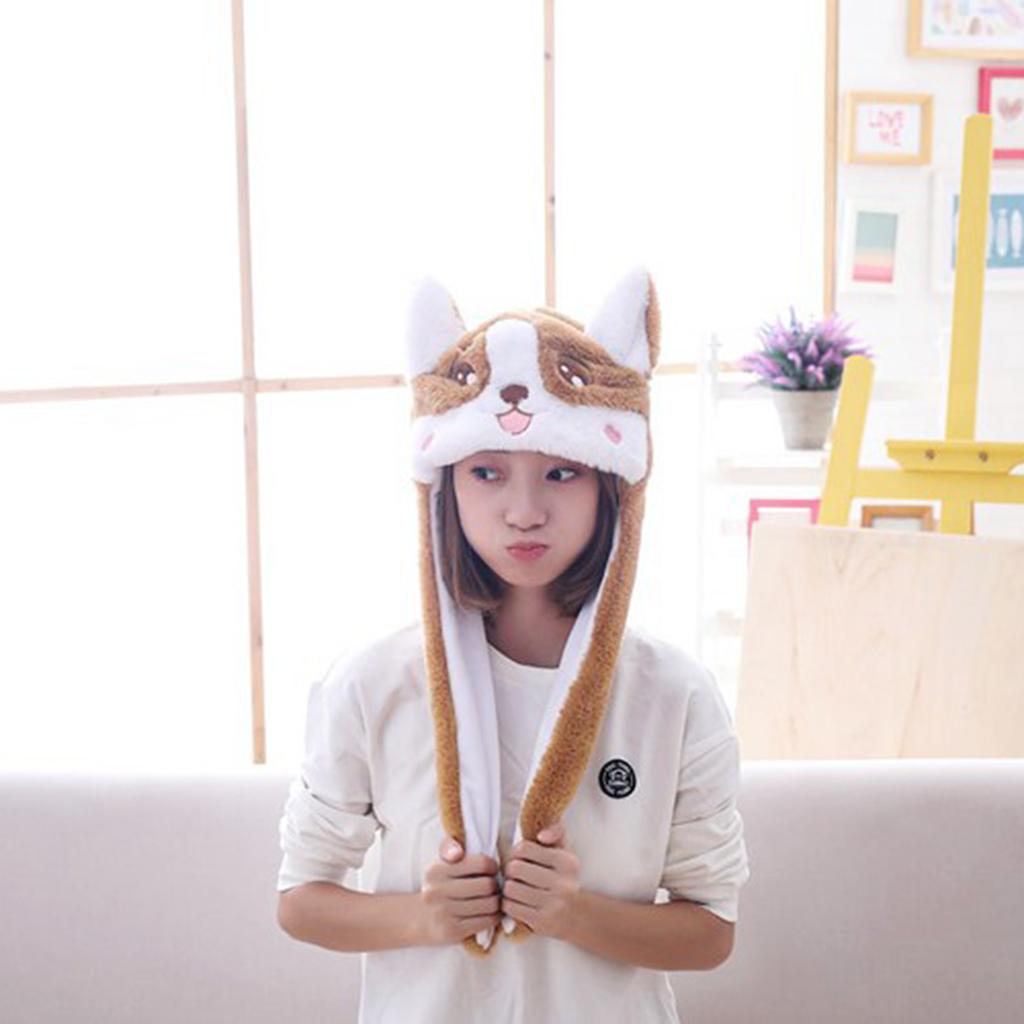 Lovely Plush Corgi Pinching Dog Ear Hat Can Move Birthday Holiday Cap Fancy Dress Toy Gifts