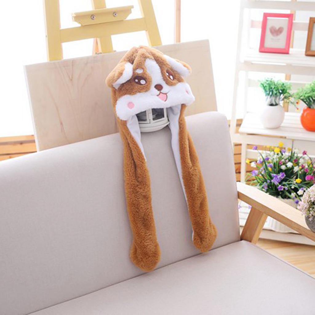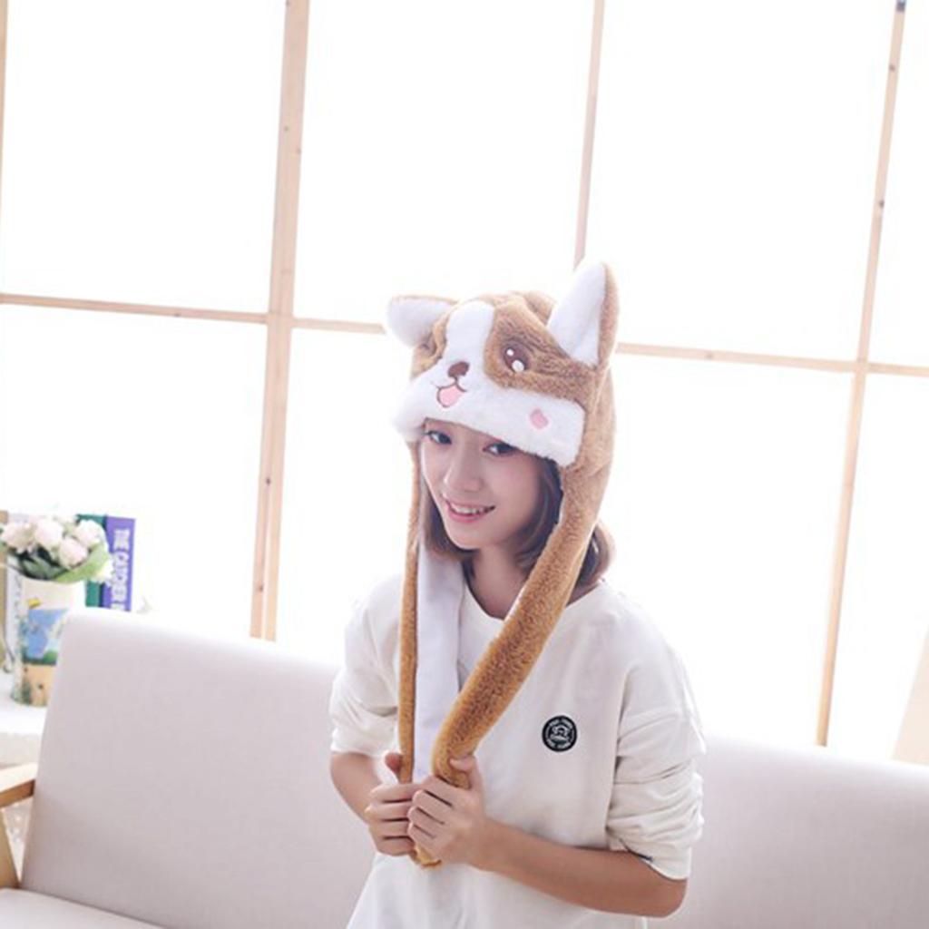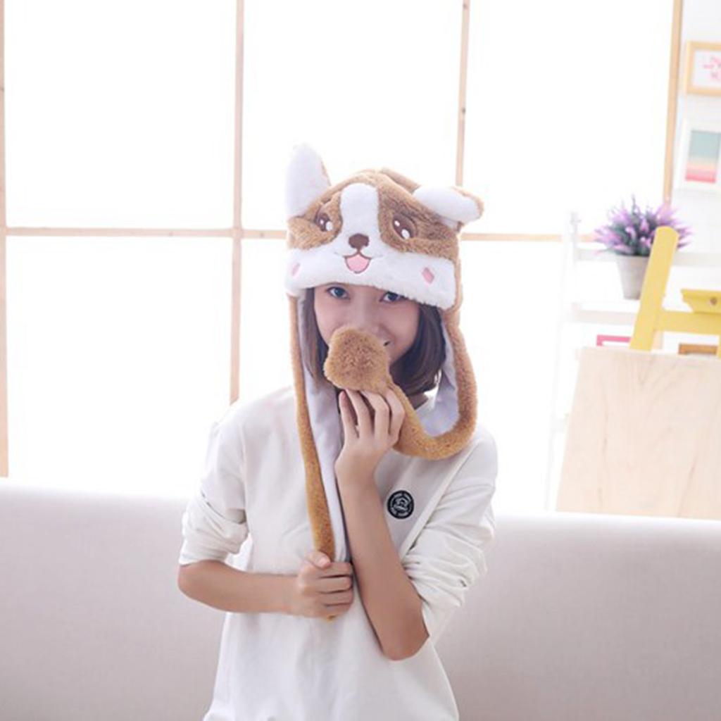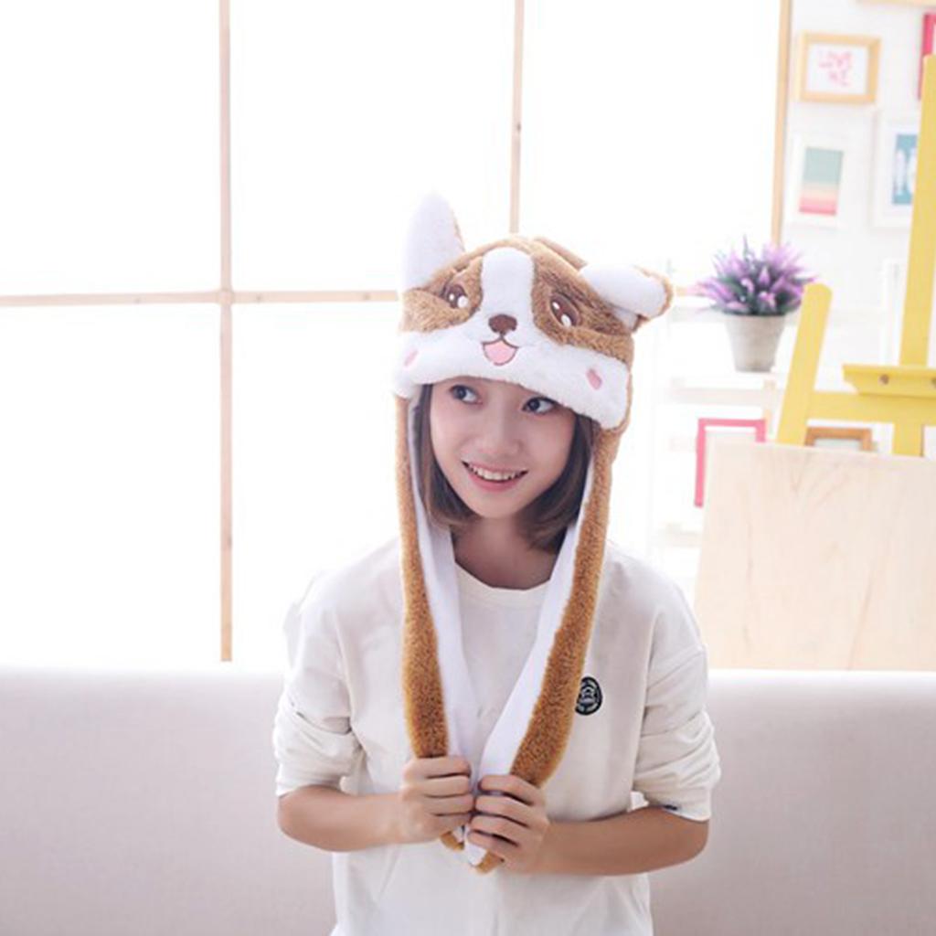Lovely Plush Corgi Pinching Dog Ear Hat Can Move Birthday Holiday Cap Fancy Dress Toy Gifts