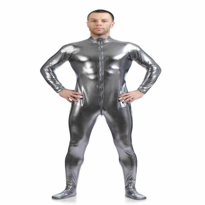 Shiny Spandex Full Body Suit Second Skin Bodysuit Zentai Unitard Grey S